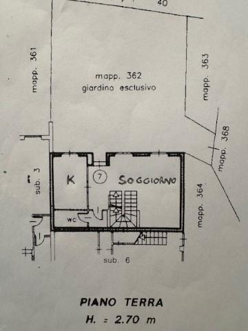 L' unità è cosi composta: ingresso indipendente con cancellato privato, un ampio loggiato in legno lamellare con struttura removibile dove un generoso giardino rende gradevole gli spazi esterni nelle serate estive, un piccolo orto privato completa l' area esterna.