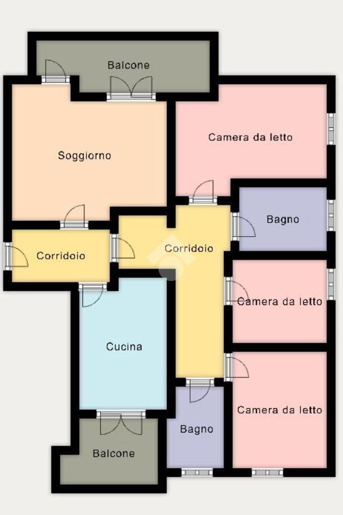 L'ingresso si apre su un primo disimpegno sul quale si affaccia la cucina abitabile con balcone e il luminoso soggiorno doppio con terrazzo esposto a Sud. Proseguendo lungo il secondo corridoio troviamo due servizi finestrati ( di cui il principale è dotata sia di vasca che di doccia) e tre camere da letto.