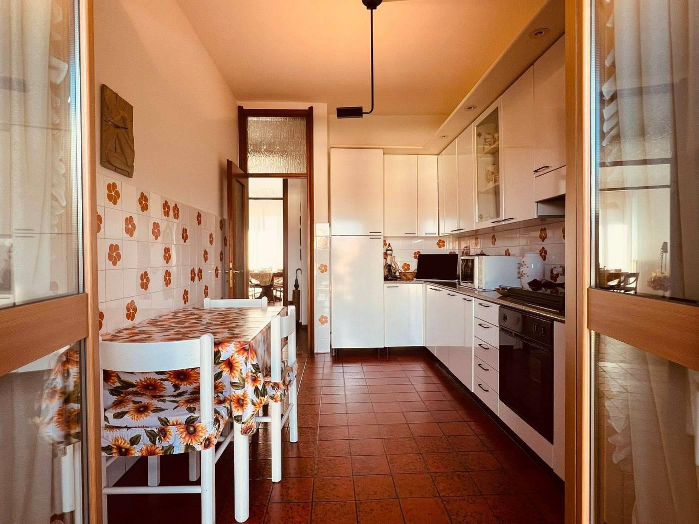 L'appartamento (libero e subito disponibile) è collocato all'ultimo piano di un cosntesto condominiale servito da ascensore e gode di tripla esposizione a Nord/Sud/Ovest.