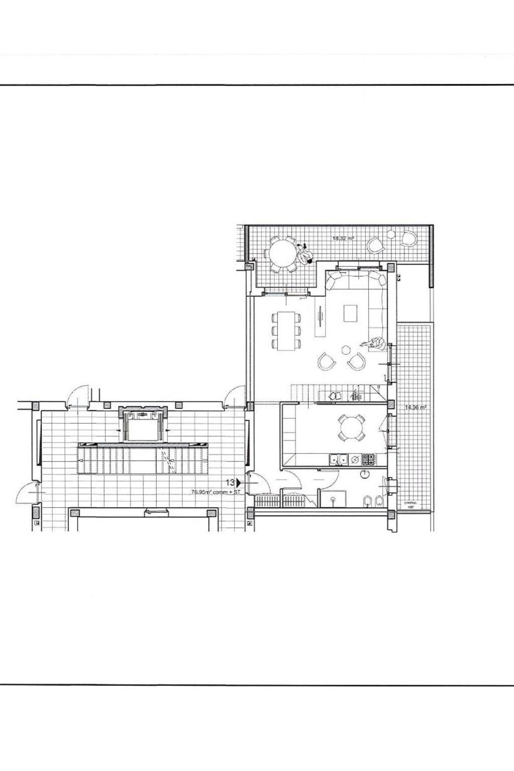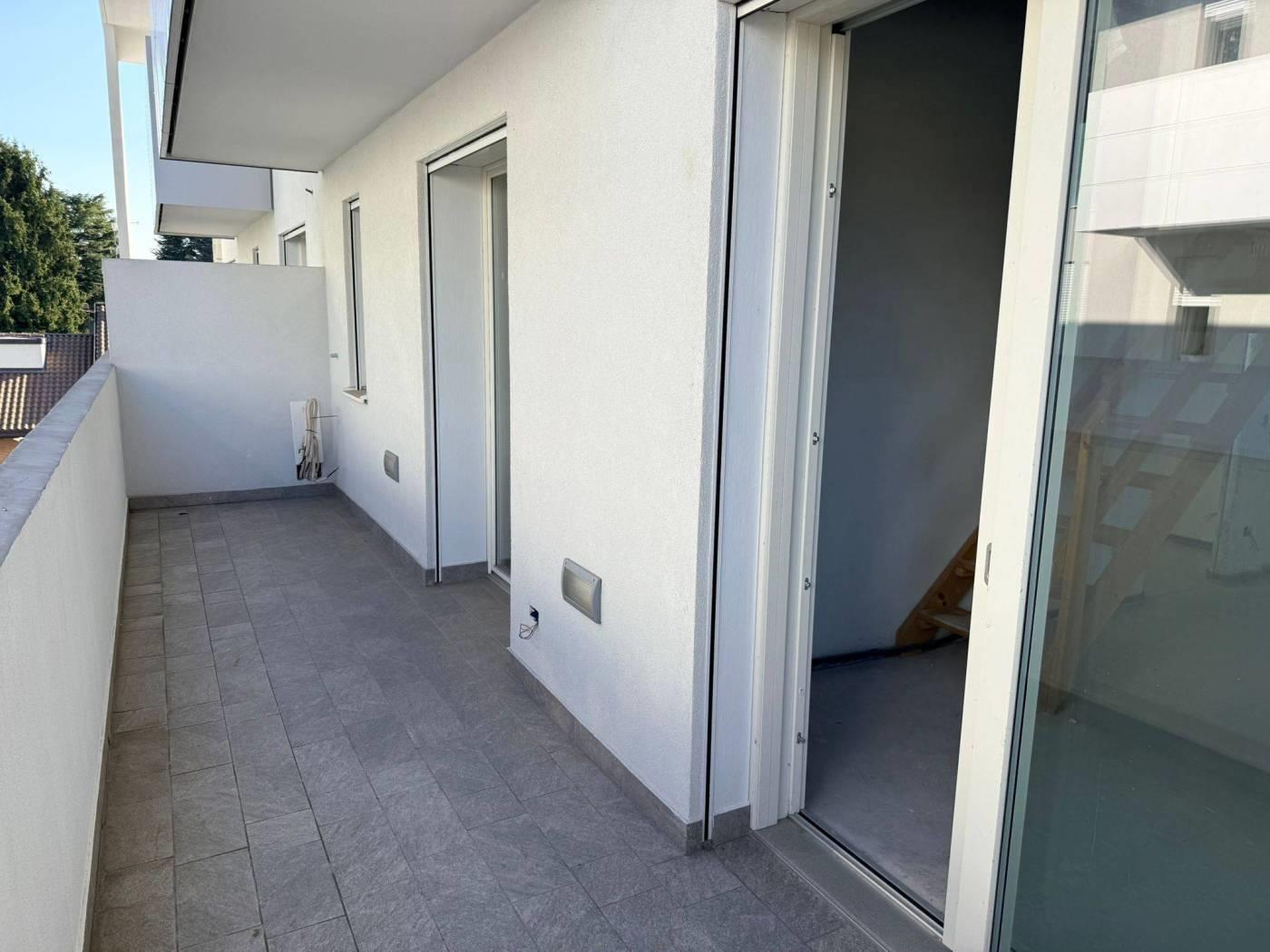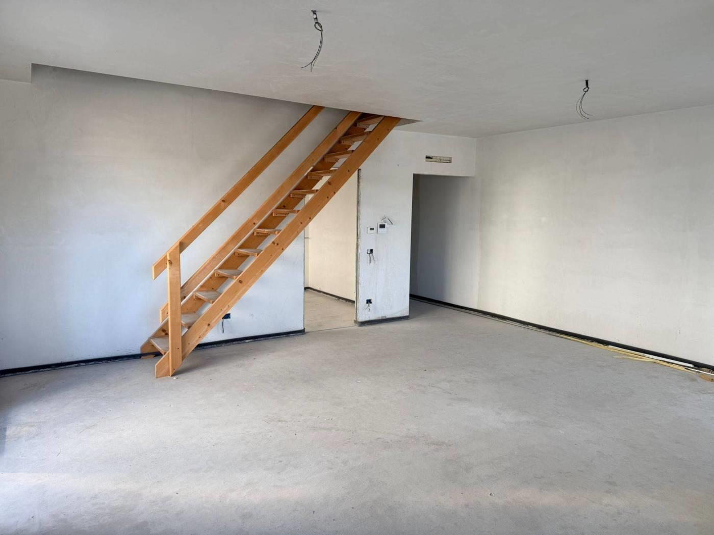 L'appartamento è disposto su due livelli e al suo interno dispone di una comoda zona d'ingresso, uno spazioso soggiorno accessoriato di un balcone di 18 mq, la cucina abitabile servita da un'ulteriore balcone di 15 mq ed un bagno. Al piano superiore troviamo il reparto notte dove troviamo la camera matrimoniale dotata di balcone con cabina armadio e bagno privato, una camera da letto anch'essa con cabina armadio, una cameretta con balcone ed un ulteriore bagno.
