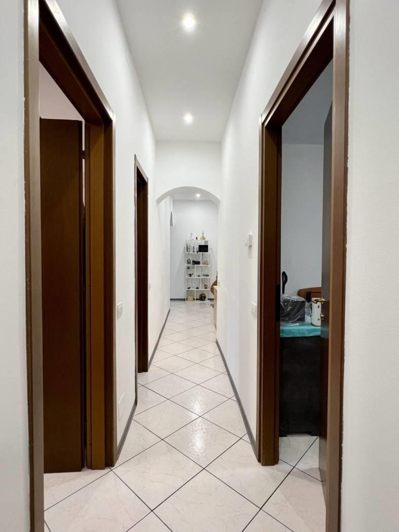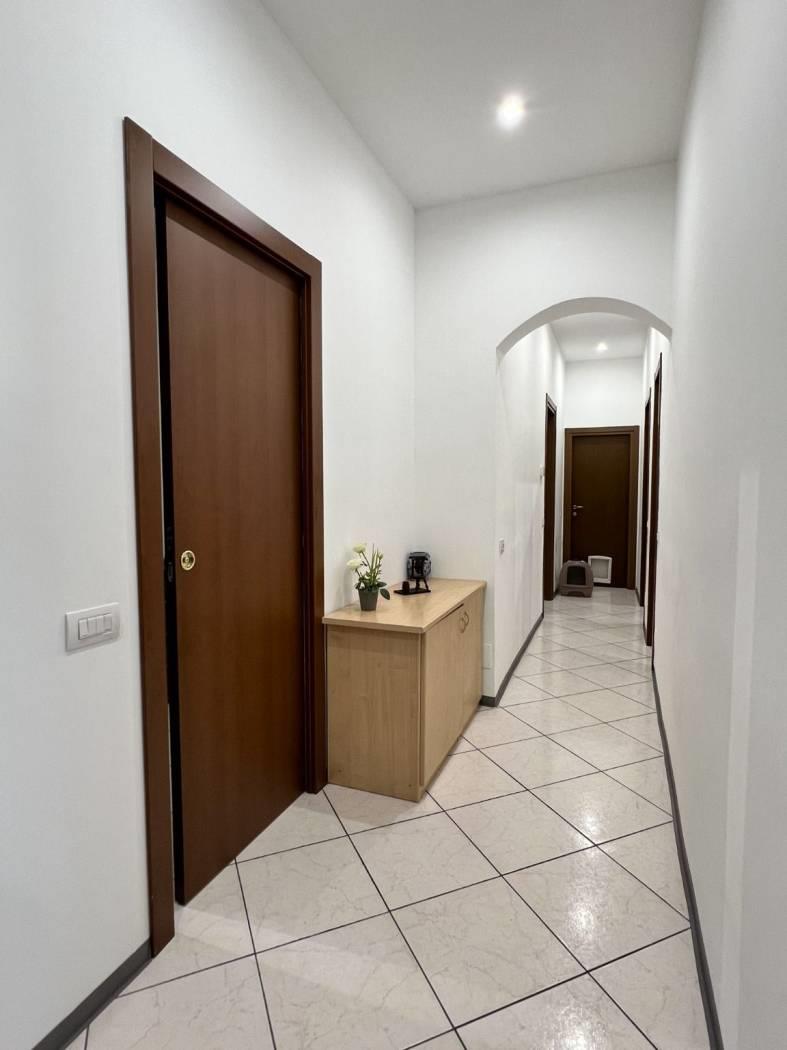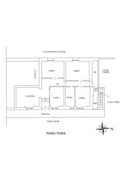 La soluzione che proponiamo, con ingresso indipendente da cortile comune, è composta da cucina abitabile, soggiorno, corridoio/disimpegno, tre camere, bagno, locale ad uso lavanderia dove presente un secondo accesso indipendente sempre da cortile comune.
