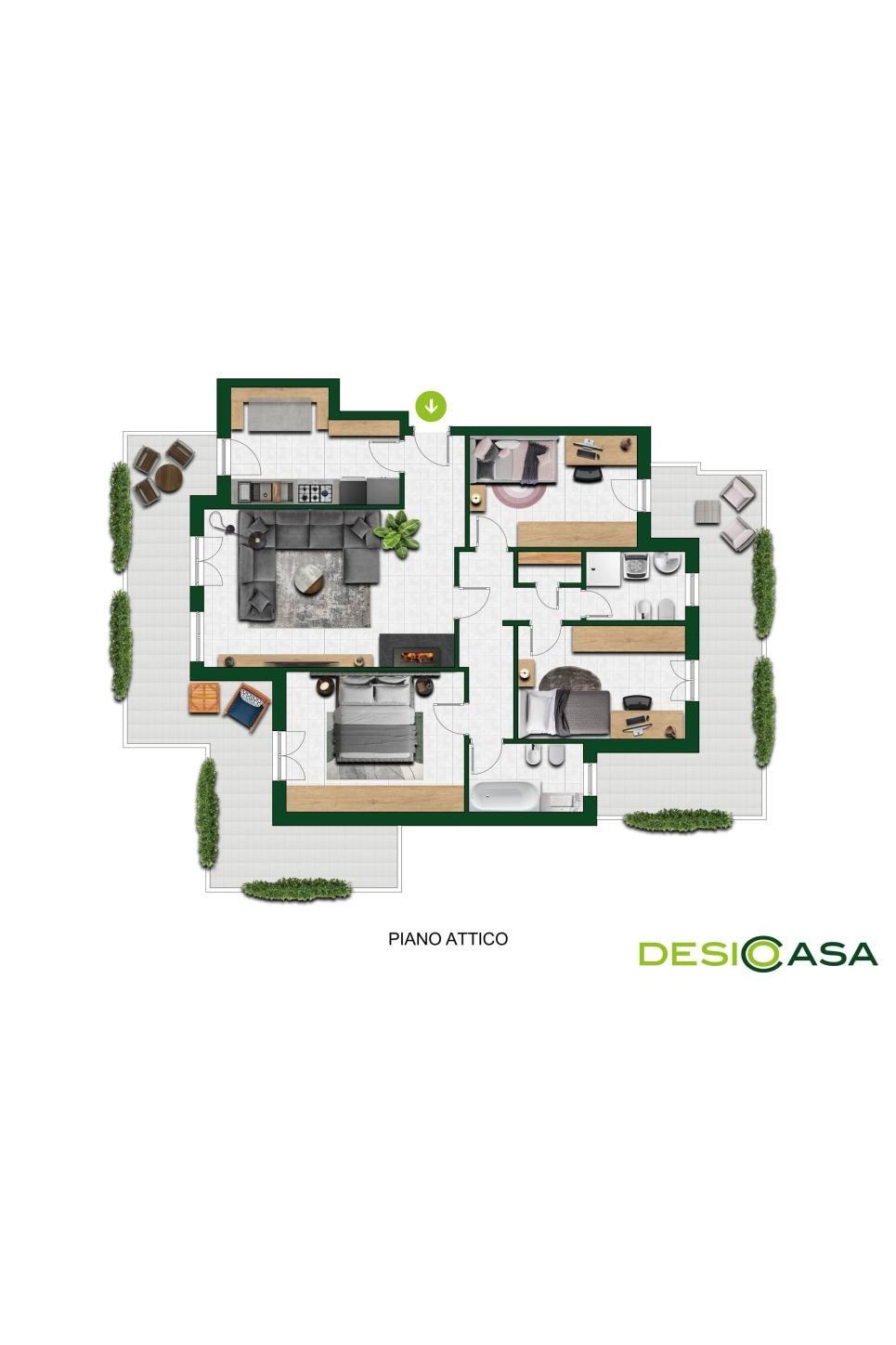 L’appartamento si trova al quarto ed ultimo piano di contesto condominiale, situato nella tranquilla zona dell’Ospedale di Desio. L’ingresso conduce a un luminoso soggiorno con camino, affiancato da una cucina separata. Un comodo disimpegno introduce la zona notte, composta da tre camere da letto, due bagni finestrati, un pratico ripostiglio e due ampi balconi che offrono una gradevole vista aperta. La proprietà gode di una tripla esposizione (sud/est/nord), che garantisce luce naturale durante tutto l’arco della giornata. L'unità è dotata di impianto di riscaldamento autonomo con caldaia a condensazione di nuova installazione, aria condizionata nel soggiorno e nella camera matrimoniale, impianto di antifurto e infissi interni ed esterni recentemente sostituiti. Completano la soluzione una cantina e un ampio box singolo con possibilità di un ulteriore box singolo adiacente a € 18.000. Libero in 3/4 mesi dal compromesso. La zona è servita da tutti i principali servizi: supermercati, scuole, asili, il mercato nord di Desio e l’Oratorio SS. Pietro e Paolo.