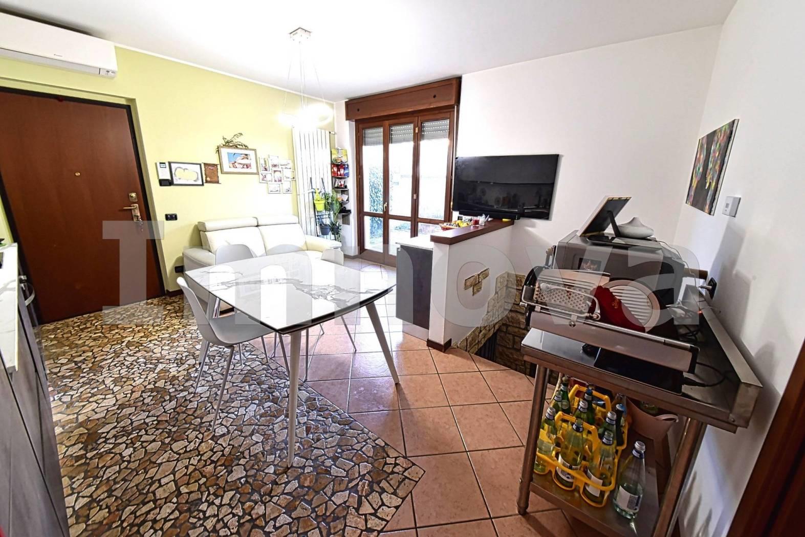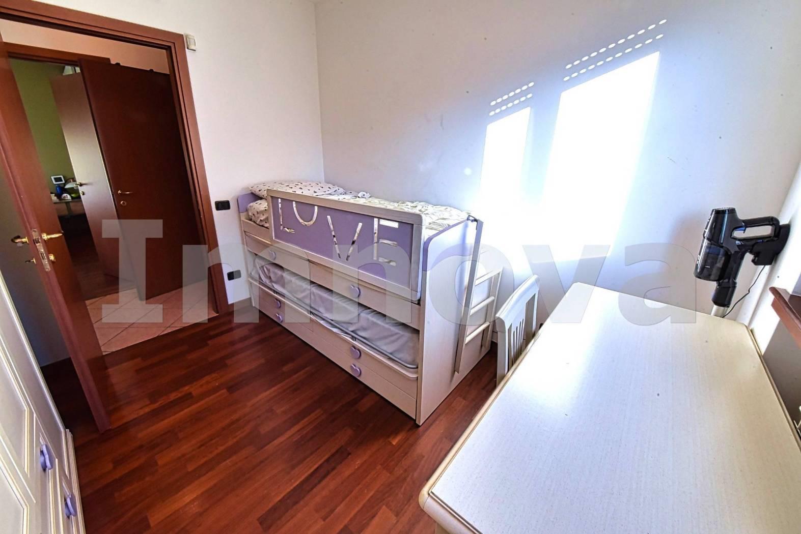 L'appartamento si compone di ingresso su soggiorno con cucina a vista, cameretta/studio, disimpegno, camera matrimoniale, cameretta e bagno. Il giardino circonda i tre lati dell' abitazione, ideale per trascorrere momenti di relax con amici e parenti. La scala interna collega dal soggiorno la grande taverna di circa 70 mq, spazio multifunzionale comodo ed accogliente con bagno e lavanderia. A completare la soluzione due posti auto coperti privati e collegati direttamente al giardino.