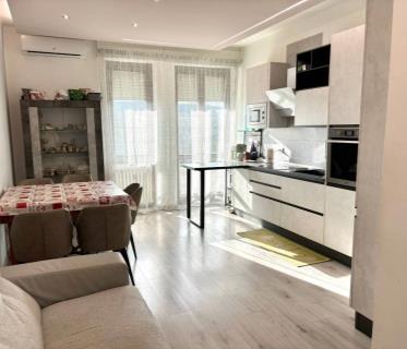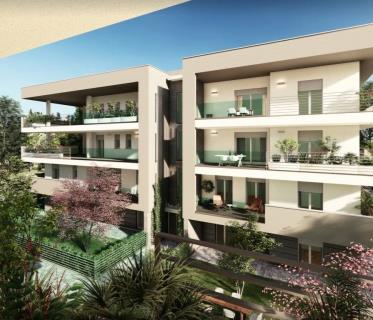 Appartamento “A1” : posto al piano 1° e composto da ingresso, soggiorno con cucina a vista, camera matrimoniale con cabina armadio, cameretta, doppi servizi, terrazzo sud e loggiato di mq.37 complessivi.