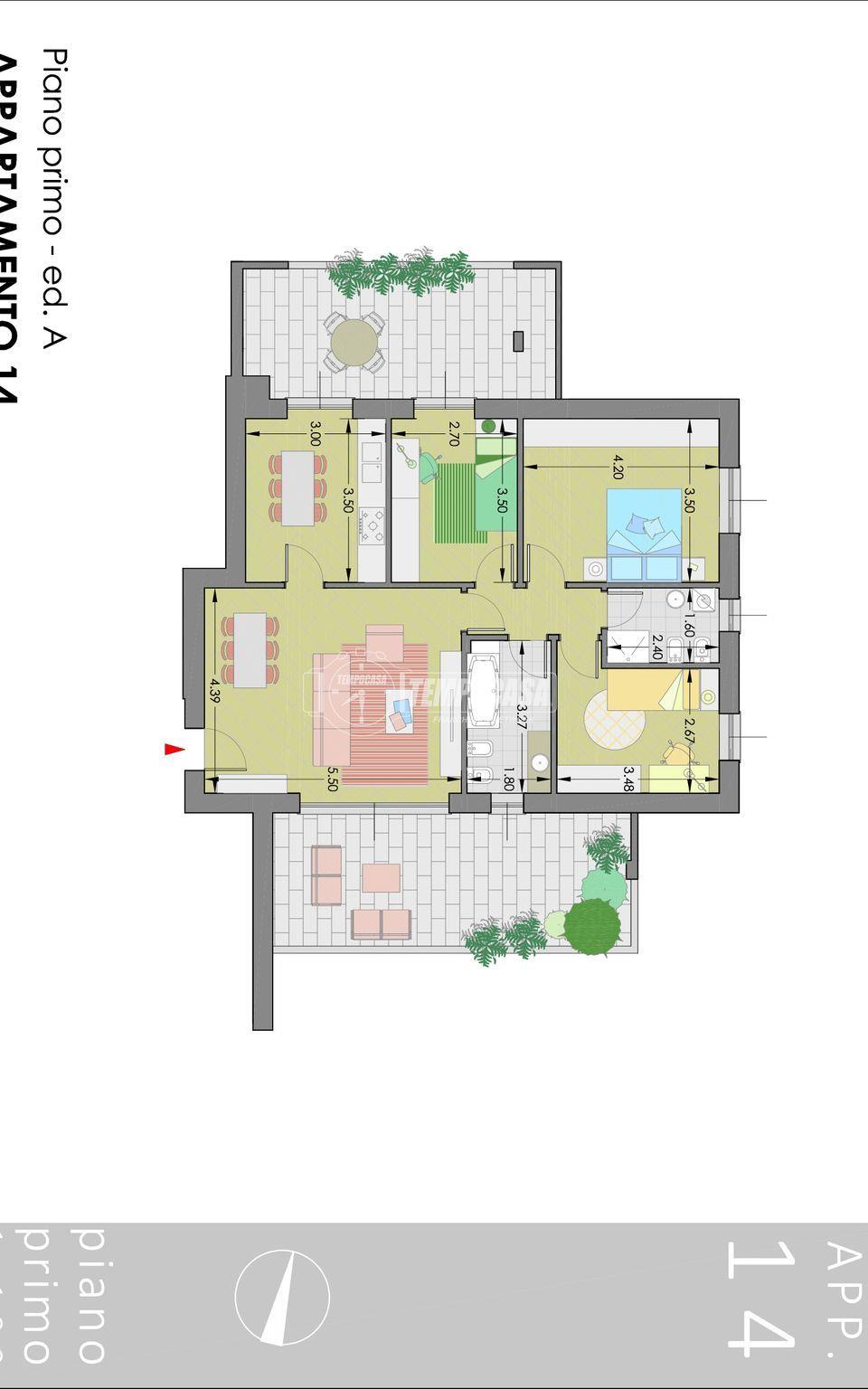 Nel dettaglio, l’appartamento 14A al piano primo dispone di 107 mq con terrazzo di 41 mq ed è disponibile a 394.000 €. L’attico 8B si sviluppa su 115 mq con un terrazzo di circa 111 mq; il prezzo è 531.000€. Ogni unità è completata da una cantina di 5 mq.