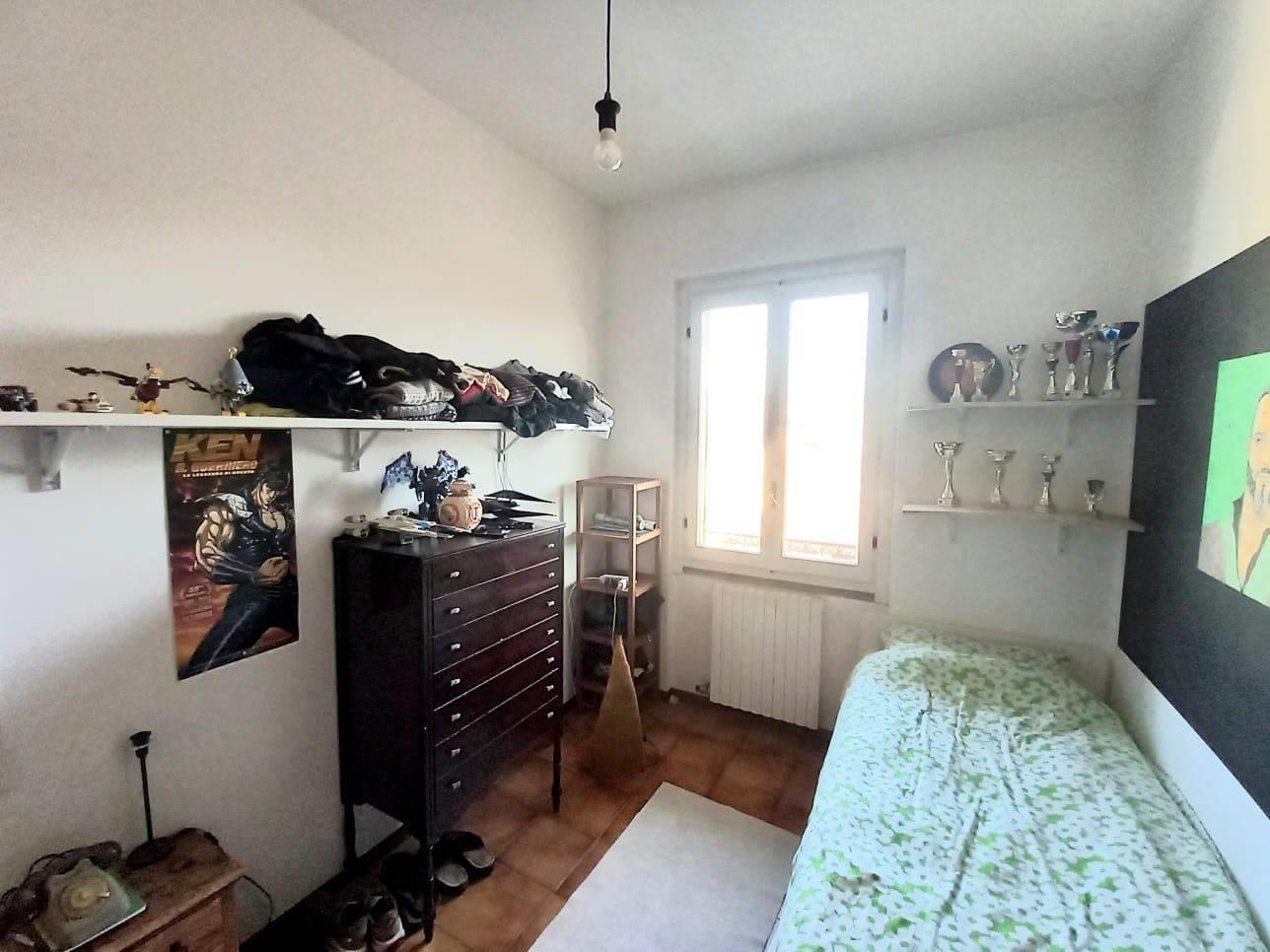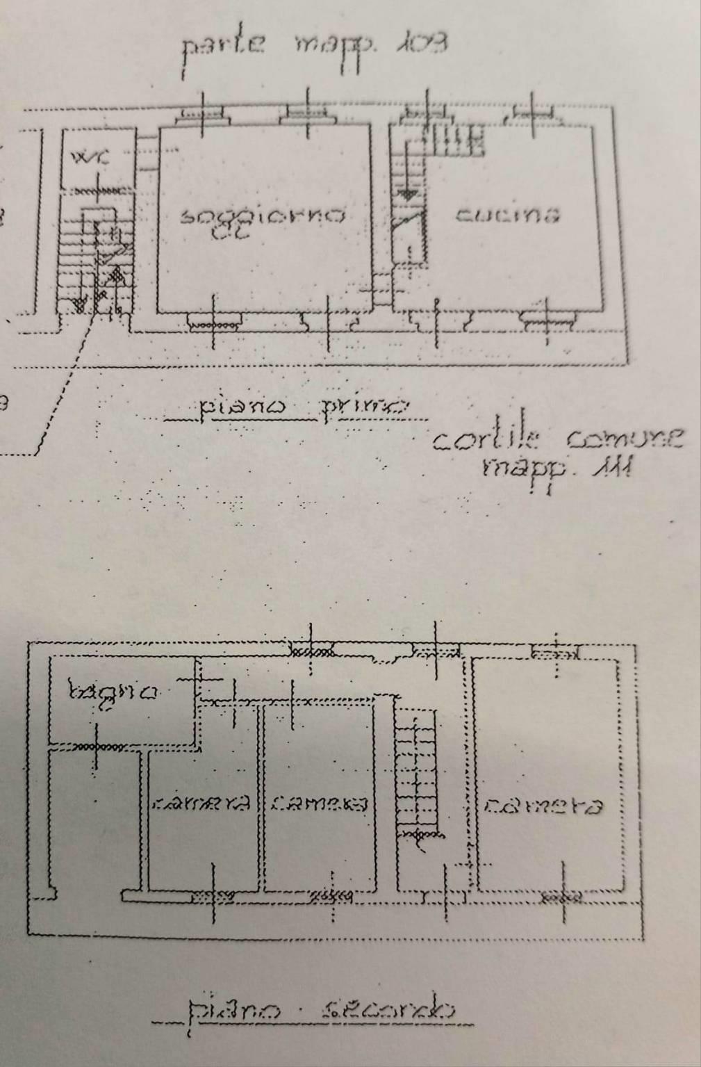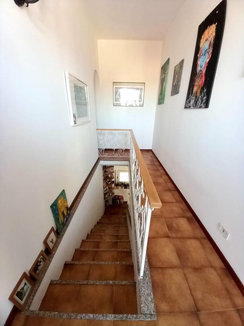 La disposizione interna comprende un soggiorno spazioso, una cucina abitabile e bagno di servizio, le tre camere da letto e un bagno al piano superiore.