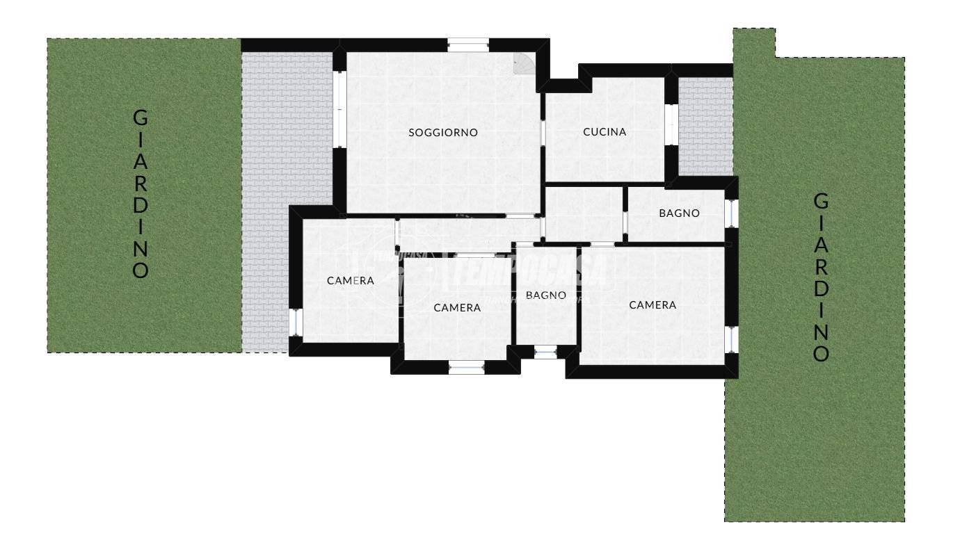 Esternamente, l’immobile è impreziosito da un giardino di circa 200 mq disposto su due fronti, che dona respiro e luminosità all’abitazione, oltre a garantire un’intima fruizione degli spazi verdi.
