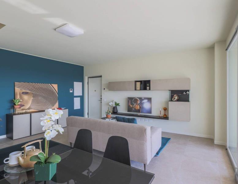 In costruzione. Palazzina AA3. Appartamento 6. Appartamento a piano primo di tre locali con terrazzo. L'appartamento ha l'ingresso direttamente nel soggiorno con cucina abitabile a vista, disimpegno, ampia camera matrimoniale, camera e due bagni. Un ampio terrazzo coperto esposto a est con vista sulla piscina completa la zona giorno. La metratura permette la possibilità di personalizzare gli spazi a seconda delle esigenze dell'acquirente. Annessa cantina al piano interrato e possibilità scelta box singoli o doppi. Il contesto si trova a ridosso del centro di Agrate, in una zona tranquilla e servita, caratterizzata dalla presenza di piccole palazzine, del supermercato che si trova a pochi passi, così come la fermata del pullman. Facilmente raggiungibili a piedi asilo (sotto casa) e scuole elementari e medie, il centro sportivo con tutte le attività ricreative per i ragazzi, l'ufficio postale, la banca e i negozi di paese. Agrate è un comune italiano di circa 16000 abitanti, si trova nella provincia di Monza e della Brianza in Lombardia. Si trova nella a nord est di Milano. Dista da Monza, capoluogo di provincia, circa 5 km. Da Milano, capoluogo di regione circa 25 km. Da Bergamo, circa 30 km. Da Lecco, circa 34 km. Le suddette località sono facilmente raggiungibili in auto grazie all'autostrada A4 MILANO - VENEZIA e alla tangenziale est MILANO LECCO. A pochi minuti di auto il centro commerciale e cinema "TORRI BIANCHE" di Vimercate, il centro commerciale "GLOBO" di Busnago, il centro commerciale "CAROSELLO" di Carugate, il parco divertimenti "LEOLANDIA" . L'ospedale di Vimercate dista 7 km e si raggiunge in 9 minuti d'auto. L'architettura presenta elementi di design, ampi spazi interni ed esterni vivibili, dove poter leggere, pranzare e rilassarsi con i propri famigliari. Una location ideale per raggiungere le vicine Milano, Monza e Bergamo utilizzando le autostrade e le tangenziali raggiungibili in un minuto di auto. Supermercati e centri commerciali, cinema, plessi scolastici a disposizione degli abitanti del nuovo residence Vismara 4.4. Un capitolato di alto livello negli alloggi privati e nelle parti comuni, con appartamenti dotati di impiantistica autonoma, gas free, e con consumi personalizzati sulla singola unità abitativa. IMPIANTO DI RISCALDAMENTO AUTONOMO: L’impianto sarà di tipo autonomo indipendente a pompa di calore aria-acqua con produzione combinata di acqua calda sanitaria, riscaldamento e raffrescamento. Modulo in unità esterna sul balcone di proprietà completo di vaso espansione, serbatoio “puffer” di accumulo dell’acqua calda per ottimizzare il funzionamento estivo, bollitore sanitario di accumulo da 150 lt con isolamento grafitico per acqua calda sanitaria. Sistema di caricamento automatico dell’impianto e pompa di circolazione maggiorata. L’energia necessaria sarà prodotta da una Pompa di calore aria-acqua splittata inverter in unità esterna, con controllo inverter per adattare in ogni istante la potenza erogata a quella richiesta dall’impianto. A completamento verrà installata apparecchiatura per il “controllo da remoto” delle temperature con monitoraggio costante dei consumi energetici L’impianto di ogni unità abitativa sarà con sistema di riscaldamento del tipo a pavimento con tubazioni radianti in polietilene reticolato posate sul pannello bugnato di supporto.