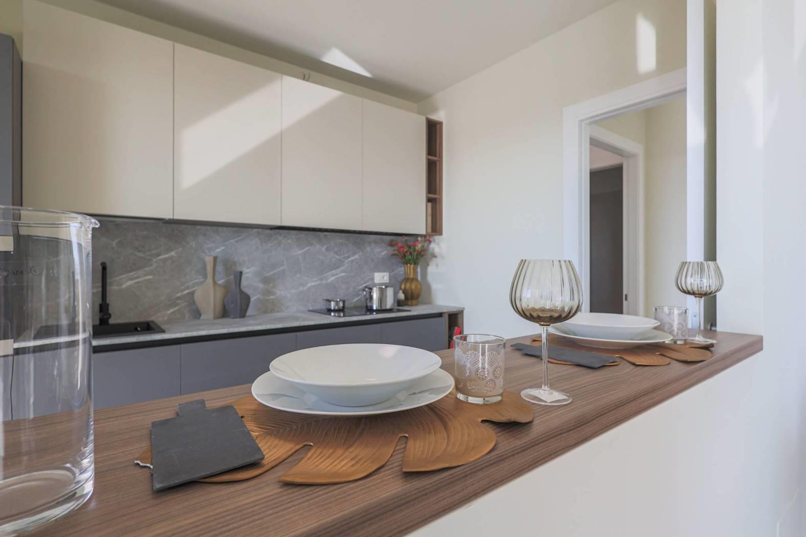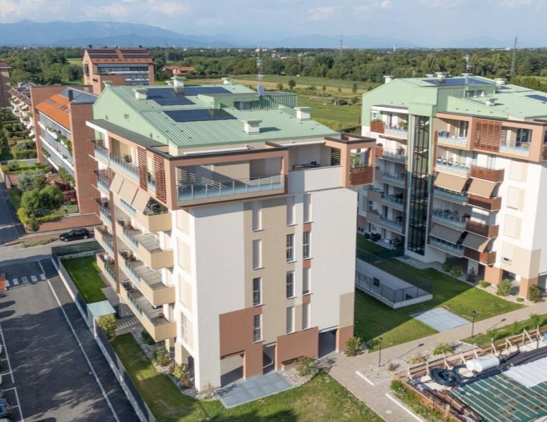 Palazzina AA4. Appartamento 17B. Appartamento a piano secondo di tre locali con terrazzo. L'appartamento ha l'ingresso direttamente nel soggiorno con cucina abitabile, disimpegno, ampia camera matrimoniale, cameretta, due bagni. Un ampio terrazzo coperto esposto a est. La metratura permette la possibilità di personalizzare gli spazi a seconda delle esigenze dell'acquirente. Annessa cantina al piano interrato e possibilità scelta box singoli o doppi. Il contesto si trova a ridosso del centro di Agrate, in una zona tranquilla e servita, caratterizzata dalla presenza di piccole palazzine, del supermercato che si trova a pochi passi, così come la fermata del pullman. Facilmente raggiungibili a piedi asilo (sotto casa) e scuole elementari e medie, il centro sportivo con tutte le attività ricreative per i ragazzi, l'ufficio postale, la banca e i negozi di paese. Agrate è un comune italiano di circa 16000 abitanti, si trova nella provincia di Monza e della Brianza in Lombardia. Si trova nella a nord est di Milano. Dista da Monza, capoluogo di provincia, circa 5 km. Da Milano, capoluogo di regione circa 25 km. Da Bergamo, circa 30 km. Da Lecco, circa 34 km. Le suddette località sono facilmente raggiungibili in auto grazie all'autostrada A4 MILANO - VENEZIA e alla tangenziale est MILANO LECCO. A pochi minuti di auto il centro commerciale e cinema "TORRI BIANCHE" di Vimercate, il centro commerciale "GLOBO" di Busnago, il centro commerciale "CAROSELLO" di Carugate, il parco divertimenti "LEOLANDIA" . L'ospedale di Vimercate dista 7 km e si raggiunge in 9 minuti d'auto. L'architettura presenta elementi di design, ampi spazi interni ed esterni vivibili, dove poter leggere, pranzare e rilassarsi con i propri famigliari. Una location ideale per raggiungere le vicine Milano, Monza e Bergamo utilizzando le autostrade e le tangenziali raggiungibili in un minuto di auto. Supermercati e centri commerciali, cinema, plessi scolastici a disposizione degli abitanti del nuovo residence Vismara 4.4. Un capitolato di alto livello negli alloggi privati e nelle parti comuni, con appartamenti dotati di impiantistica autonoma, gas free, e con consumi personalizzati sulla singola unità abitativa. IMPIANTO DI RISCALDAMENTO AUTONOMO: L’impianto sarà di tipo autonomo indipendente a pompa di calore aria-acqua con produzione combinata di acqua calda sanitaria, riscaldamento e raffrescamento. Modulo in unità esterna sul balcone di proprietà completo di vaso espansione, serbatoio “puffer” di accumulo dell’acqua calda per ottimizzare il funzionamento estivo, bollitore sanitario di accumulo da 150 lt con isolamento grafitico per acqua calda sanitaria. Sistema di caricamento automatico dell’impianto e pompa di circolazione maggiorata. L’energia necessaria sarà prodotta da una Pompa di calore aria-acqua splittata inverter in unità esterna, con controllo inverter per adattare in ogni istante la potenza erogata a quella richiesta dall’impianto. A completamento verrà installata apparecchiatura per il “controllo da remoto” delle temperature con monitoraggio costante dei consumi energetici L’impianto di ogni unità abitativa sarà con sistema di riscaldamento del tipo a pavimento con tubazioni radianti in polietilene reticolato posate sul pannello bugnato di supporto.