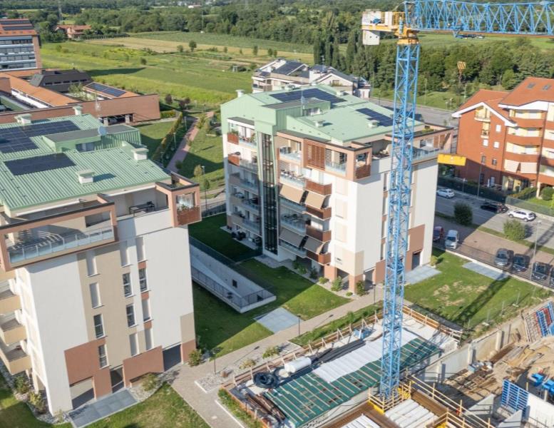 In costruzione. Palazzina AA3. Appartamento 1. Appartamento di due locali composto da ingresso nel soggiorno con cucina a vista di oltre trenta metri quadrati, il tutto affacciato tramite parete vetrata su uno splendido terrazzo coperto esposto a est, con accesso allo splendido giardino e con vista sul giardino condominiale e sulla piscina. Disimpegno, ampia camera matrimoniale e bagno . La metratura permette la possibilità di personalizzare gli spazi a seconda delle esigenze dell'acquirente. Annessa cantina al piano interrato e possibilità scelta box singoli o doppi. Il contesto si trova a ridosso del centro di Agrate, in una zona tranquilla e servita, caratterizzata dalla presenza di piccole palazzine, del supermercato che si trova a pochi passi, così come la fermata del pullman. Facilmente raggiungibili a piedi asilo (sotto casa) e scuole elementari e medie, il centro sportivo con tutte le attività ricreative per i ragazzi, l'ufficio postale, la banca e i negozi di paese. Agrate è un comune italiano di circa 16000 abitanti, si trova nella provincia di Monza e della Brianza in Lombardia. Si trova nella a nord est di Milano. Dista da Monza, capoluogo di provincia, circa 5 km. Da Milano, capoluogo di regione circa 25 km. Da Bergamo, circa 30 km. Da Lecco, circa 34 km. Le suddette località sono facilmente raggiungibili in auto grazie all'autostrada A4 MILANO - VENEZIA e alla tangenziale est MILANO LECCO. A pochi minuti di auto il centro commerciale e cinema "TORRI BIANCHE" di Vimercate, il centro commerciale "GLOBO" di Busnago, il centro commerciale "CAROSELLO" di Carugate, il parco divertimenti "LEOLANDIA" . L'ospedale di Vimercate dista 7 km e si raggiunge in 9 minuti d'auto. L'architettura presenta elementi di design, ampi spazi interni ed esterni vivibili, dove poter leggere, pranzare e rilassarsi con i propri famigliari. Una location ideale per raggiungere le vicine Milano, Monza e Bergamo utilizzando le autostrade e le tangenziali raggiungibili in un minuto di auto. Supermercati e centri commerciali, cinema, plessi scolastici a disposizione degli abitanti del nuovo residence Vismara 4.4. Un capitolato di alto livello negli alloggi privati e nelle parti comuni, con appartamenti dotati di impiantistica autonoma, gas free, e con consumi personalizzati sulla singola unità abitativa. IMPIANTO DI RISCALDAMENTO AUTONOMO: L’impianto sarà di tipo autonomo indipendente a pompa di calore aria-acqua con produzione combinata di acqua calda sanitaria, riscaldamento e raffrescamento. Modulo in unità esterna sul balcone di proprietà completo di vaso espansione, serbatoio “puffer” di accumulo dell’acqua calda per ottimizzare il funzionamento estivo, bollitore sanitario di accumulo da 150 lt con isolamento grafitico per acqua calda sanitaria. Sistema di caricamento automatico dell’impianto e pompa di circolazione maggiorata. L’energia necessaria sarà prodotta da una Pompa di calore aria-acqua splittata inverter in unità esterna, con controllo inverter per adattare in ogni istante la potenza erogata a quella richiesta dall’impianto. A completamento verrà installata apparecchiatura per il “controllo da remoto” delle temperature con monitoraggio costante dei consumi energetici L’impianto di ogni unità abitativa sarà con sistema di riscaldamento del tipo a pavimento con tubazioni radianti in polietilene reticolato posate sul pannello bugnato di supporto.