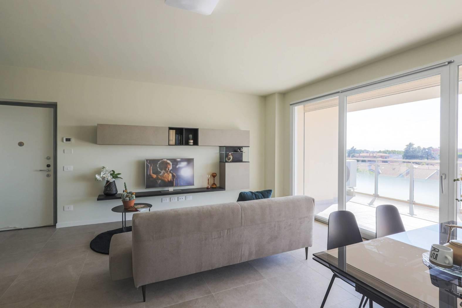 Palazzina AA3. Appartamento 9B. Appartamento a piano secondo di tre locali con terrazzo. L'appartamento ha l'ingresso direttamente nel soggiorno con cucina abitabile, disimpegno, ampia camera matrimoniale, cameretta, due bagni. Un ampio terrazzo coperto esposto a ovest. La metratura permette la possibilità di personalizzare gli spazi a seconda delle esigenze dell'acquirente. Annessa cantina al piano interrato e possibilità scelta box singoli o doppi. Il contesto si trova a ridosso del centro di Agrate, in una zona tranquilla e servita, caratterizzata dalla presenza di piccole palazzine, del supermercato che si trova a pochi passi, così come la fermata del pullman. Facilmente raggiungibili a piedi asilo (sotto casa) e scuole elementari e medie, il centro sportivo con tutte le attività ricreative per i ragazzi, l'ufficio postale, la banca e i negozi di paese. Agrate è un comune italiano di circa 16000 abitanti, si trova nella provincia di Monza e della Brianza in Lombardia. Si trova nella a nord est di Milano. Dista da Monza, capoluogo di provincia, circa 5 km. Da Milano, capoluogo di regione circa 25 km. Da Bergamo, circa 30 km. Da Lecco, circa 34 km. Le suddette località sono facilmente raggiungibili in auto grazie all'autostrada A4 MILANO - VENEZIA e alla tangenziale est MILANO LECCO. A pochi minuti di auto il centro commerciale e cinema "TORRI BIANCHE" di Vimercate, il centro commerciale "GLOBO" di Busnago, il centro commerciale "CAROSELLO" di Carugate, il parco divertimenti "LEOLANDIA" . L'ospedale di Vimercate dista 7 km e si raggiunge in 9 minuti d'auto. L'architettura presenta elementi di design, ampi spazi interni ed esterni vivibili, dove poter leggere, pranzare e rilassarsi con i propri famigliari. Una location ideale per raggiungere le vicine Milano, Monza e Bergamo utilizzando le autostrade e le tangenziali raggiungibili in un minuto di auto. Supermercati e centri commerciali, cinema, plessi scolastici a disposizione degli abitanti del nuovo residence Vismara 4.4. Un capitolato di alto livello negli alloggi privati e nelle parti comuni, con appartamenti dotati di impiantistica autonoma, gas free, e con consumi personalizzati sulla singola unità abitativa. IMPIANTO DI RISCALDAMENTO AUTONOMO: L’impianto sarà di tipo autonomo indipendente a pompa di calore aria-acqua con produzione combinata di acqua calda sanitaria, riscaldamento e raffrescamento. Modulo in unità esterna sul balcone di proprietà completo di vaso espansione, serbatoio “puffer” di accumulo dell’acqua calda per ottimizzare il funzionamento estivo, bollitore sanitario di accumulo da 150 lt con isolamento grafitico per acqua calda sanitaria. Sistema di caricamento automatico dell’impianto e pompa di circolazione maggiorata. L’energia necessaria sarà prodotta da una Pompa di calore aria-acqua splittata inverter in unità esterna, con controllo inverter per adattare in ogni istante la potenza erogata a quella richiesta dall’impianto. A completamento verrà installata apparecchiatura per il “controllo da remoto” delle temperature con monitoraggio costante dei consumi energetici L’impianto di ogni unità abitativa sarà con sistema di riscaldamento del tipo a pavimento con tubazioni radianti in polietilene reticolato posate sul pannello bugnato di supporto.