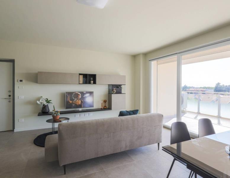 Palazzina AA4. Appartamento 14. Appartamento a piano terzo di quattro locali con terrazzo. L'appartamento ha l'ingresso direttamente nel soggiorno con cucina abitabile a vista, disimpegno, ampia camera matrimoniale, due camere e due bagni. Un ampio terrazzo coperto esposto a ovest con vista sulla piscina completa la zona giorno. La metratura permette la possibilità di personalizzare gli spazi a seconda delle esigenze dell'acquirente. Annessa cantina al piano interrato e possibilità scelta box singoli o doppi. Il contesto si trova a ridosso del centro di Agrate, in una zona tranquilla e servita, caratterizzata dalla presenza di piccole palazzine, del supermercato che si trova a pochi passi, così come la fermata del pullman. Facilmente raggiungibili a piedi asilo (sotto casa) e scuole elementari e medie, il centro sportivo con tutte le attività ricreative per i ragazzi, l'ufficio postale, la banca e i negozi di paese. Agrate è un comune italiano di circa 16000 abitanti, si trova nella provincia di Monza e della Brianza in Lombardia. Si trova nella a nord est di Milano. Dista da Monza, capoluogo di provincia, circa 5 km. Da Milano, capoluogo di regione circa 25 km. Da Bergamo, circa 30 km. Da Lecco, circa 34 km. Le suddette località sono facilmente raggiungibili in auto grazie all'autostrada A4 MILANO - VENEZIA e alla tangenziale est MILANO LECCO. A pochi minuti di auto il centro commerciale e cinema "TORRI BIANCHE" di Vimercate, il centro commerciale "GLOBO" di Busnago, il centro commerciale "CAROSELLO" di Carugate, il parco divertimenti "LEOLANDIA" . L'ospedale di Vimercate dista 7 km e si raggiunge in 9 minuti d'auto. L'architettura presenta elementi di design, ampi spazi interni ed esterni vivibili, dove poter leggere, pranzare e rilassarsi con i propri famigliari. Una location ideale per raggiungere le vicine Milano, Monza e Bergamo utilizzando le autostrade e le tangenziali raggiungibili in un minuto di auto. Supermercati e centri commerciali, cinema, plessi scolastici a disposizione degli abitanti del nuovo residence Vismara 4.4. Un capitolato di alto livello negli alloggi privati e nelle parti comuni, con appartamenti dotati di impiantistica autonoma, gas free, e con consumi personalizzati sulla singola unità abitativa. IMPIANTO DI RISCALDAMENTO AUTONOMO: L’impianto sarà di tipo autonomo indipendente a pompa di calore aria-acqua con produzione combinata di acqua calda sanitaria, riscaldamento e raffrescamento. Modulo in unità esterna sul balcone di proprietà completo di vaso espansione, serbatoio “puffer” di accumulo dell’acqua calda per ottimizzare il funzionamento estivo, bollitore sanitario di accumulo da 150 lt con isolamento grafitico per acqua calda sanitaria. Sistema di caricamento automatico dell’impianto e pompa di circolazione maggiorata. L’energia necessaria sarà prodotta da una Pompa di calore aria-acqua splittata inverter in unità esterna, con controllo inverter per adattare in ogni istante la potenza erogata a quella richiesta dall’impianto. A completamento verrà installata apparecchiatura per il “controllo da remoto” delle temperature con monitoraggio costante dei consumi energetici L’impianto di ogni unità abitativa sarà con sistema di riscaldamento del tipo a pavimento con tubazioni radianti in polietilene reticolato posate sul pannello bugnato di supporto.