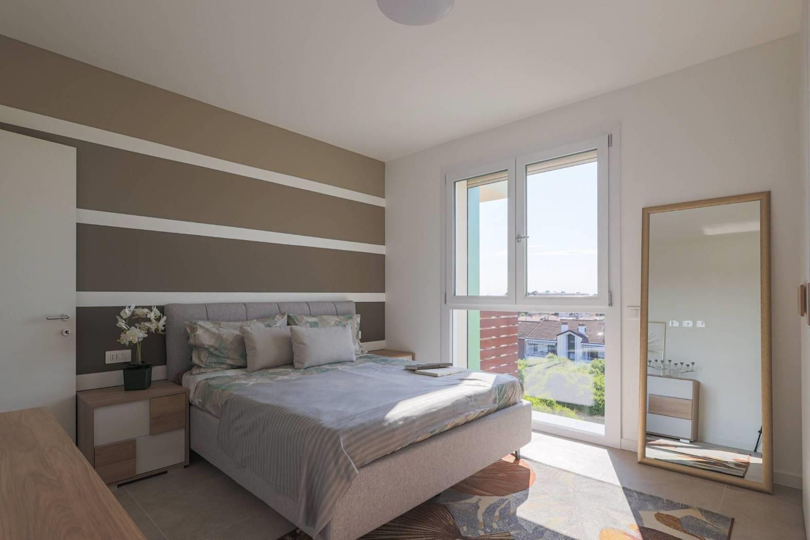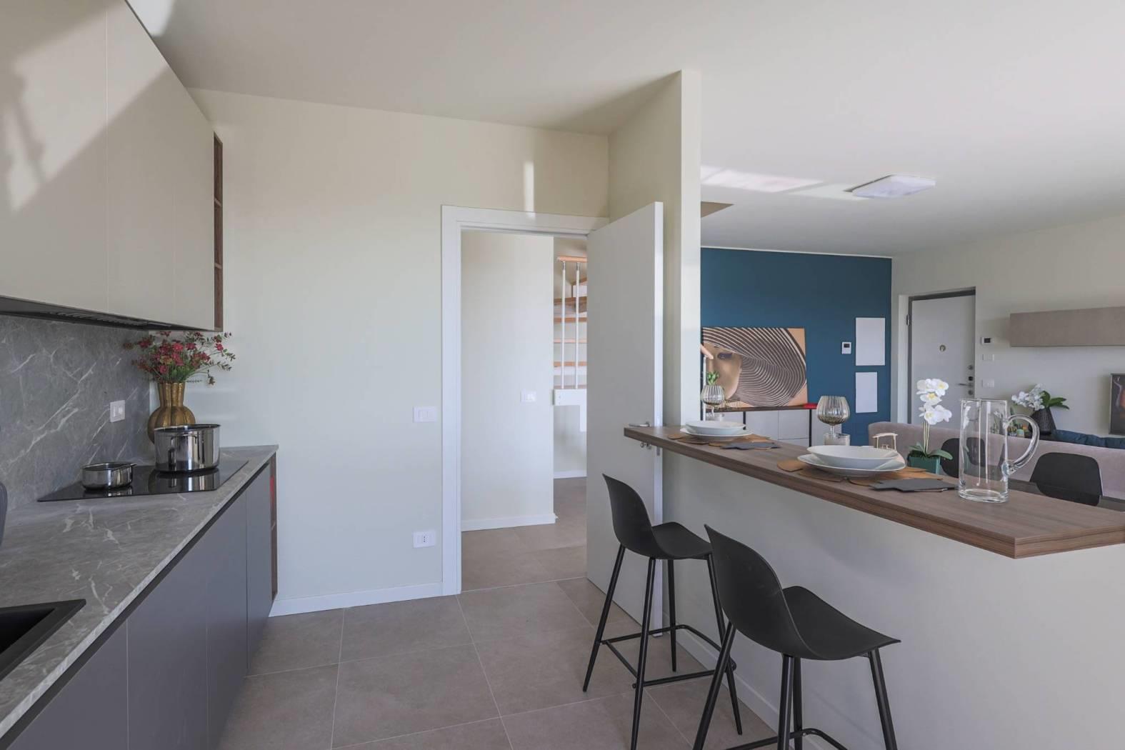 In costruzione. Palazzina AA4. Appartamento 1. Appartamento di tre locali composto da ingresso nel soggiorno con cucina a vista di oltre trenta metri quadrati, il tutto affacciato tramite parete vetrata su uno splendido terrazzo coperto esposto a sud/ovest, con accesso allo splendido giardino e con vista sul giardino condominiale e sulla piscina. Disimpegno, ampia camera matrimoniale, cameretta e bagno. La metratura permette la possibilità di personalizzare gli spazi a seconda delle esigenze dell'acquirente. Annessa cantina al piano interrato e possibilità scelta box singoli o doppi. Il contesto si trova a ridosso del centro di Agrate, in una zona tranquilla e servita, caratterizzata dalla presenza di piccole palazzine, del supermercato che si trova a pochi passi, così come la fermata del pullman. Facilmente raggiungibili a piedi asilo (sotto casa) e scuole elementari e medie, il centro sportivo con tutte le attività ricreative per i ragazzi, l'ufficio postale, la banca e i negozi di paese. Agrate è un comune italiano di circa 16000 abitanti, si trova nella provincia di Monza e della Brianza in Lombardia. Si trova nella a nord est di Milano. Dista da Monza, capoluogo di provincia, circa 5 km. Da Milano, capoluogo di regione circa 25 km. Da Bergamo, circa 30 km. Da Lecco, circa 34 km. Le suddette località sono facilmente raggiungibili in auto grazie all'autostrada A4 MILANO - VENEZIA e alla tangenziale est MILANO LECCO. A pochi minuti di auto il centro commerciale e cinema "TORRI BIANCHE" di Vimercate, il centro commerciale "GLOBO" di Busnago, il centro commerciale "CAROSELLO" di Carugate, il parco divertimenti "LEOLANDIA" . L'ospedale di Vimercate dista 7 km e si raggiunge in 9 minuti d'auto. L'architettura presenta elementi di design, ampi spazi interni ed esterni vivibili, dove poter leggere, pranzare e rilassarsi con i propri famigliari. Una location ideale per raggiungere le vicine Milano, Monza e Bergamo utilizzando le autostrade e le tangenziali raggiungibili in un minuto di auto. Supermercati e centri commerciali, cinema, plessi scolastici a disposizione degli abitanti del nuovo residence Vismara 4.4. Un capitolato di alto livello negli alloggi privati e nelle parti comuni, con appartamenti dotati di impiantistica autonoma, gas free, e con consumi personalizzati sulla singola unità abitativa. IMPIANTO DI RISCALDAMENTO AUTONOMO: L’impianto sarà di tipo autonomo indipendente a pompa di calore aria-acqua con produzione combinata di acqua calda sanitaria, riscaldamento e raffrescamento. Modulo in unità esterna sul balcone di proprietà completo di vaso espansione, serbatoio “puffer” di accumulo dell’acqua calda per ottimizzare il funzionamento estivo, bollitore sanitario di accumulo da 150 lt con isolamento grafitico per acqua calda sanitaria. Sistema di caricamento automatico dell’impianto e pompa di circolazione maggiorata. L’energia necessaria sarà prodotta da una Pompa di calore aria-acqua splittata inverter in unità esterna, con controllo inverter per adattare in ogni istante la potenza erogata a quella richiesta dall’impianto. A completamento verrà installata apparecchiatura per il “controllo da remoto” delle temperature con monitoraggio costante dei consumi energetici L’impianto di ogni unità abitativa sarà con sistema di riscaldamento del tipo a pavimento con tubazioni radianti in polietilene reticolato posate sul pannello bugnato di supporto.