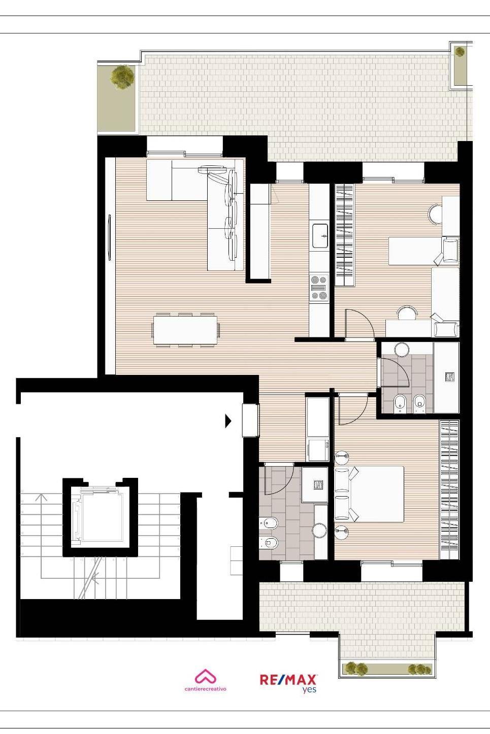 Proponiamo trilocale di nuova realizzazione così composto: ingresso, ampio soggiorno con cucina a vista, con accesso al terrazzo coperto e bagno di servizio. Dall'ingresso si accede anche al disimpegno dove abbiamo una camera doppia e una camera matrimoniale ed un bagno padronale, dalla camera si ha accesso al terrazzo, mentre dalla camera matrimoniale si ha accesso al balcone.