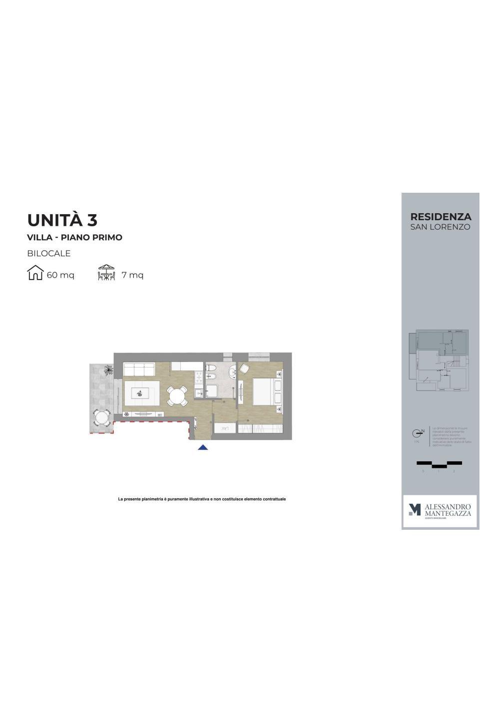 Bilocale al piano primo di una villa di sole quattro unità, con balcone, ideale per momenti di relax all’aperto.