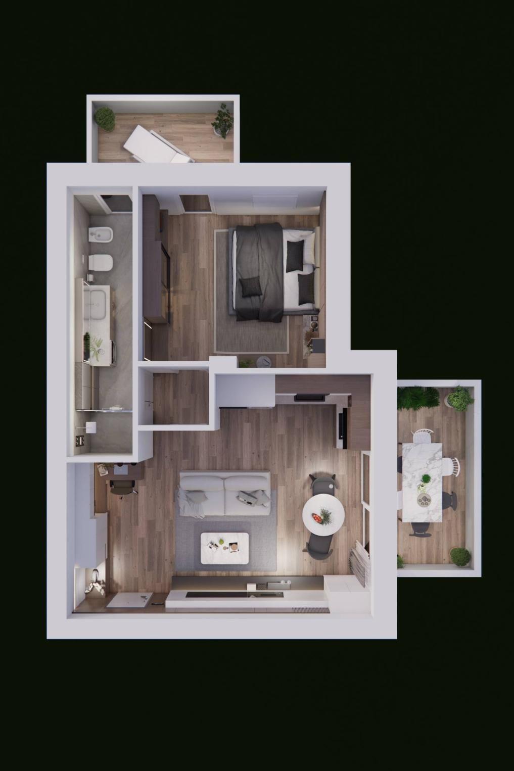 Immagina di vivere in appartamenti luminosi e spaziosi, con ampi giardini esclusivi al piano terra, perfetti per momenti di relax all'aperto o per far giocare i tuoi bambini in totale sicurezza. Al primo piano, invece, potrai goderti grandi terrazzi ideali per aperitivi al tramonto, cene con amici o semplicemente per ammirare il paesaggio circostante.