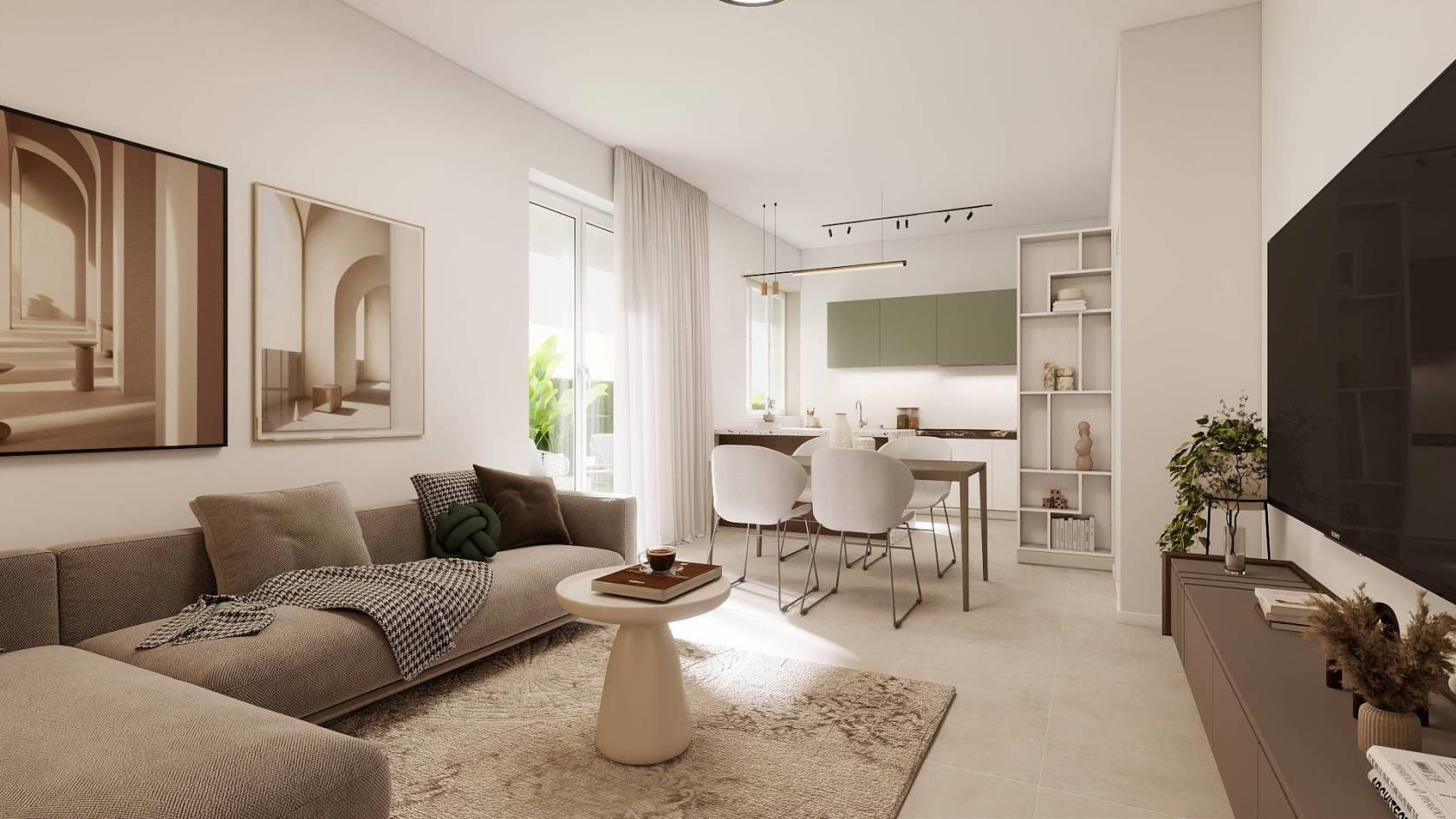 Tutti gli appartamenti saranno realizzati con finiture e impianti di alto livello: ogni unità sarà dotata di porta d’ingresso blindata, mentre i serramenti in PVC con triplo vetro garantiranno un eccellente isolamento termico e acustico, assicurando benessere e tranquillità in ogni ambiente.
