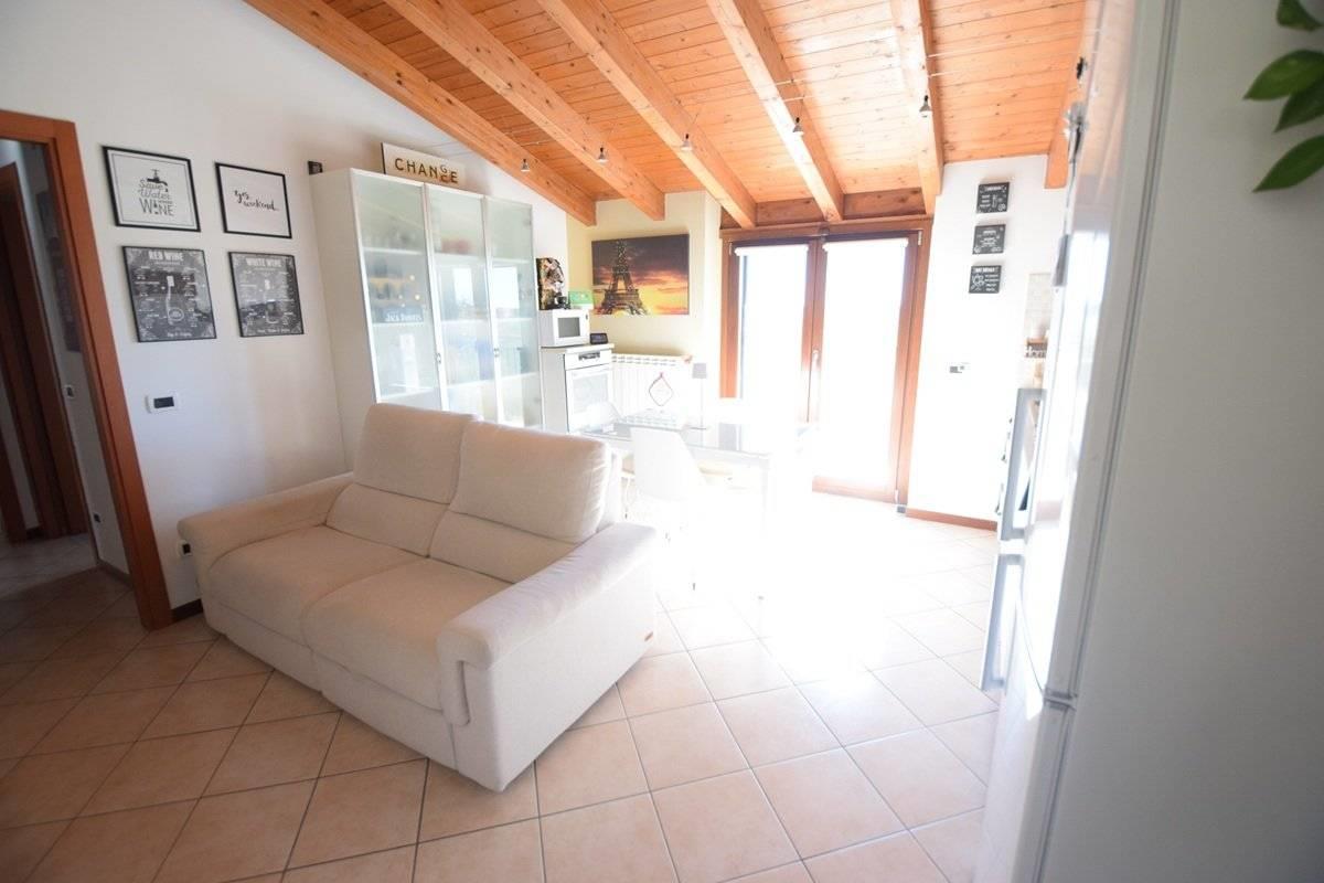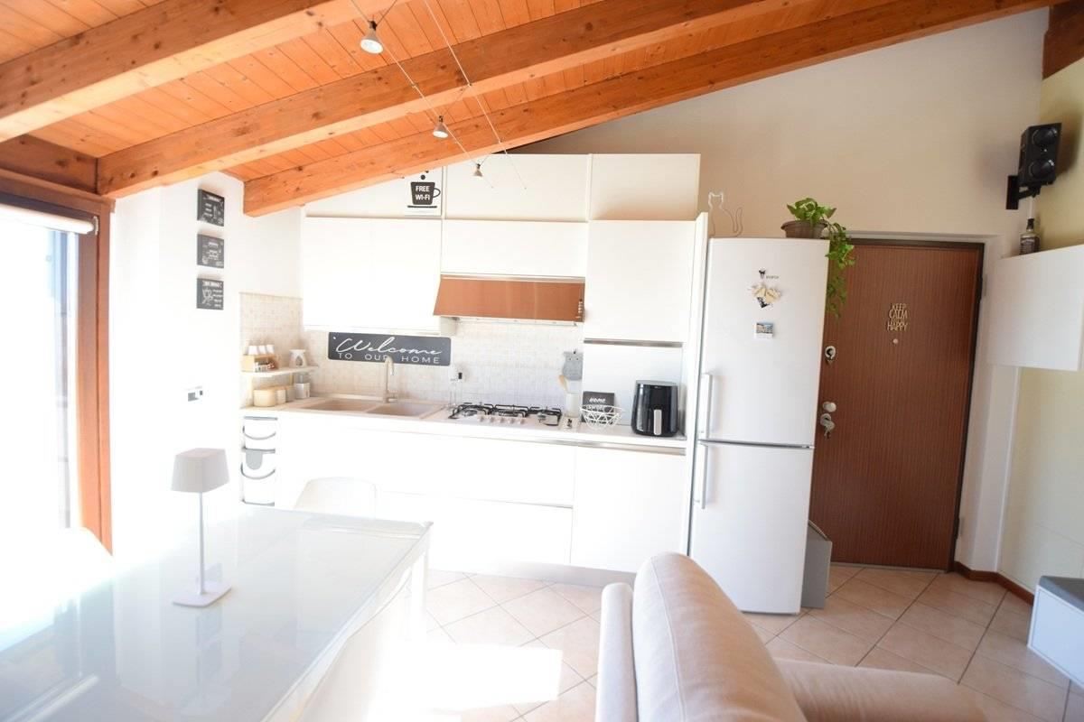appartamento di due locali con cantina e box di recente costruzione in minipalazzina termo autonoma con travi a vista composto da: ingresso, soggiorno con angolo cottura, ampia camera matrimoniale e bagno con doccia e due ampi balconi. in perfette condizioni, climatizzato, serramenti con doppi vetri, impianto di allarme