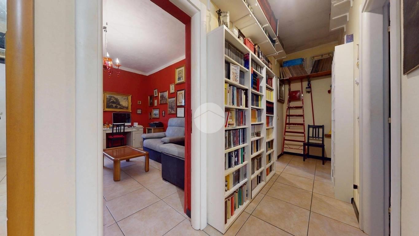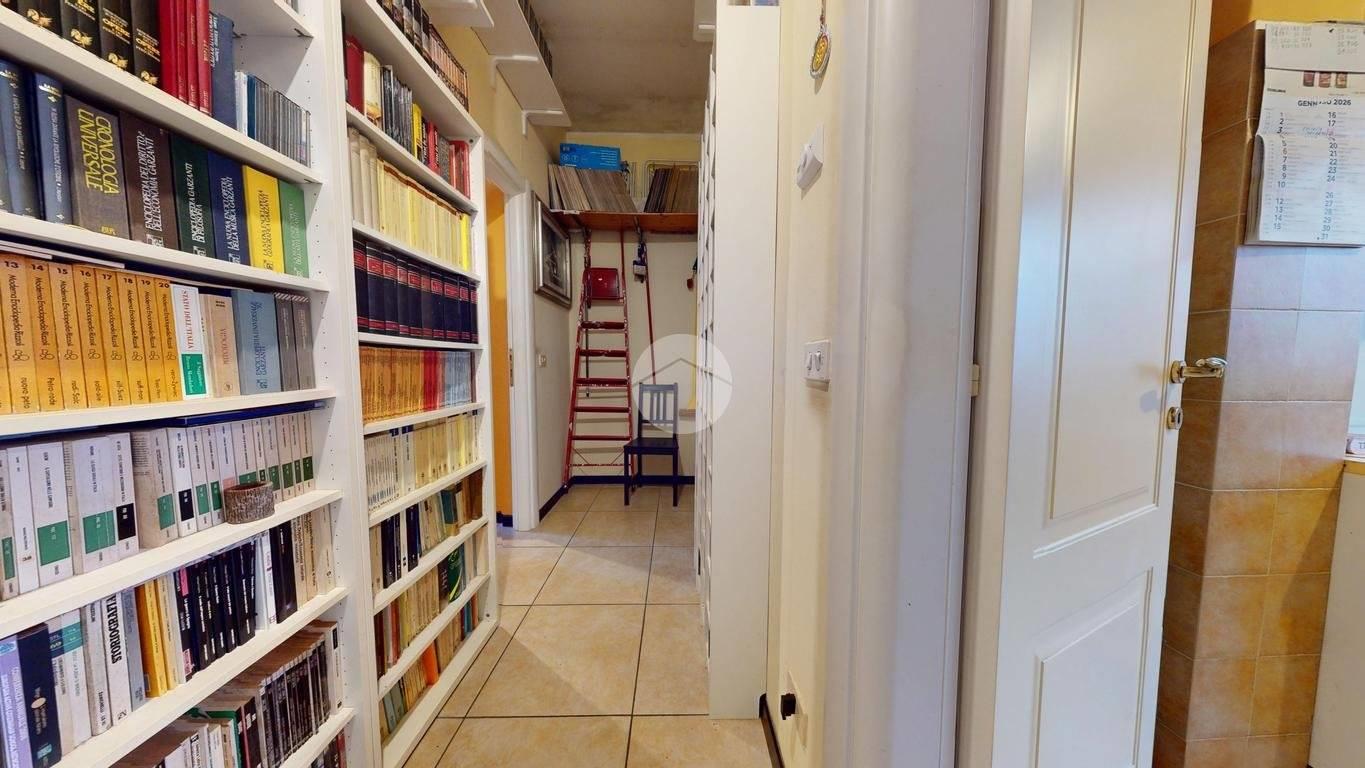 L’ingresso tramite porta blindata si apre su un corridoio che conduce al soggiorno, impreziosito da porte interne bugnate laccate bianche, che donano luminosità e uno stile classico senza tempo agli ambienti.