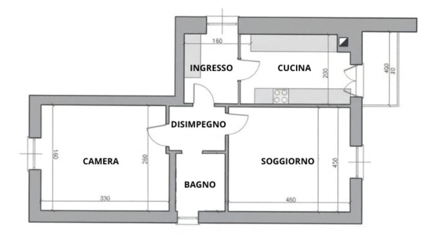Attualmente l’immobile è adibito a ristorante, ma in origine era un appartamento. La proprietà si farà carico del cambio di destinazione d’uso per riconvertirlo a residenziale, riportandolo quindi alla sua funzione abitativa originaria. Una volta completata la procedura urbanistica, sarà possibile tramite una ristrutturazione, realizzare un comodo due locali composto da ingresso, soggiorno, cucina, balcone, camera da letto e bagno.