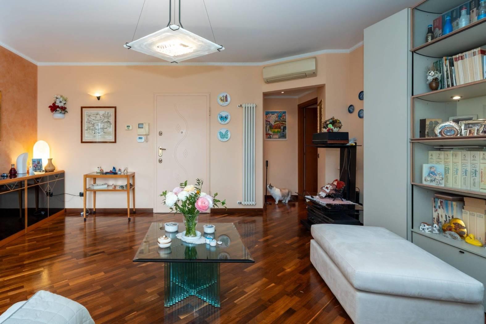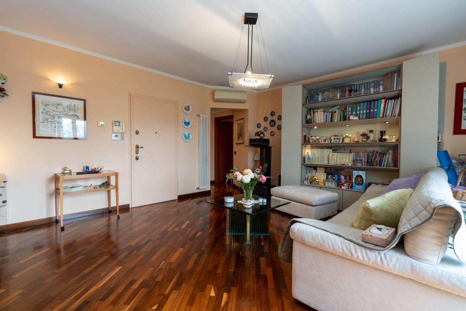 Via Monte Grappa 33, in posizione tranquilla, molto comoda per Monza, in elegante complesso residenziale di tre piani, ben tenuto e ben curato nelle sue parti comuni, appartamento con una tripla esposizione, per complessivi 153 mq, in ottimo stato nei suoi ambienti interni e senza necessità di interventi, composto da : ingresso, un salone con un primo ampio balcone che prende anche la cucina abitabile di ampie dimensioni con un funzionale ripostiglio. La zona notte presenta una prima camera da letto matrimoniale molto luminosa con due finestre, altre due camere da letto esposte all'interno, di cui una dispone del secondo balcone; i doppi servizi finestrati con sanitari sospesi, il primo con una vasca idromassaggio, il secondo con un ampio box doccia che ha il secondo balcone; parquet presente in salone e nelle camere, impianto di climatizzazione. La proprietà, che ha delle spese condominiali contenute ed il riscaldamento autonomo, è completata da una cantina oltre ad un box doppio in larghezza di 29 mq. Richiesta € 437.000.