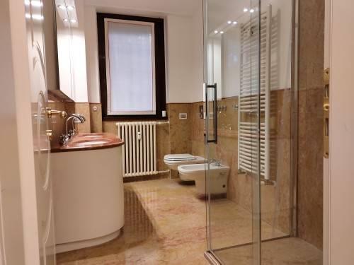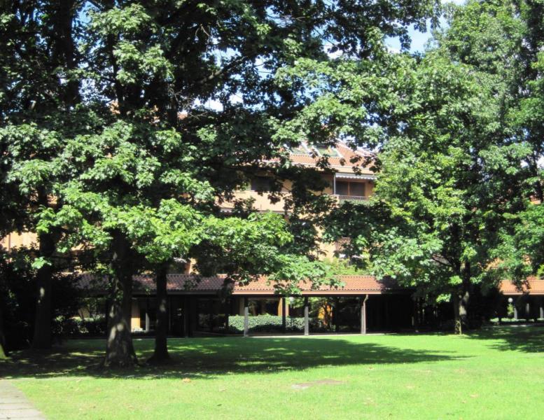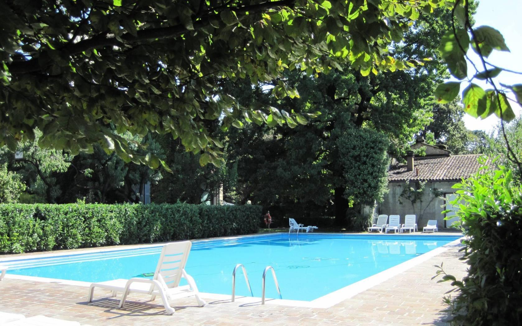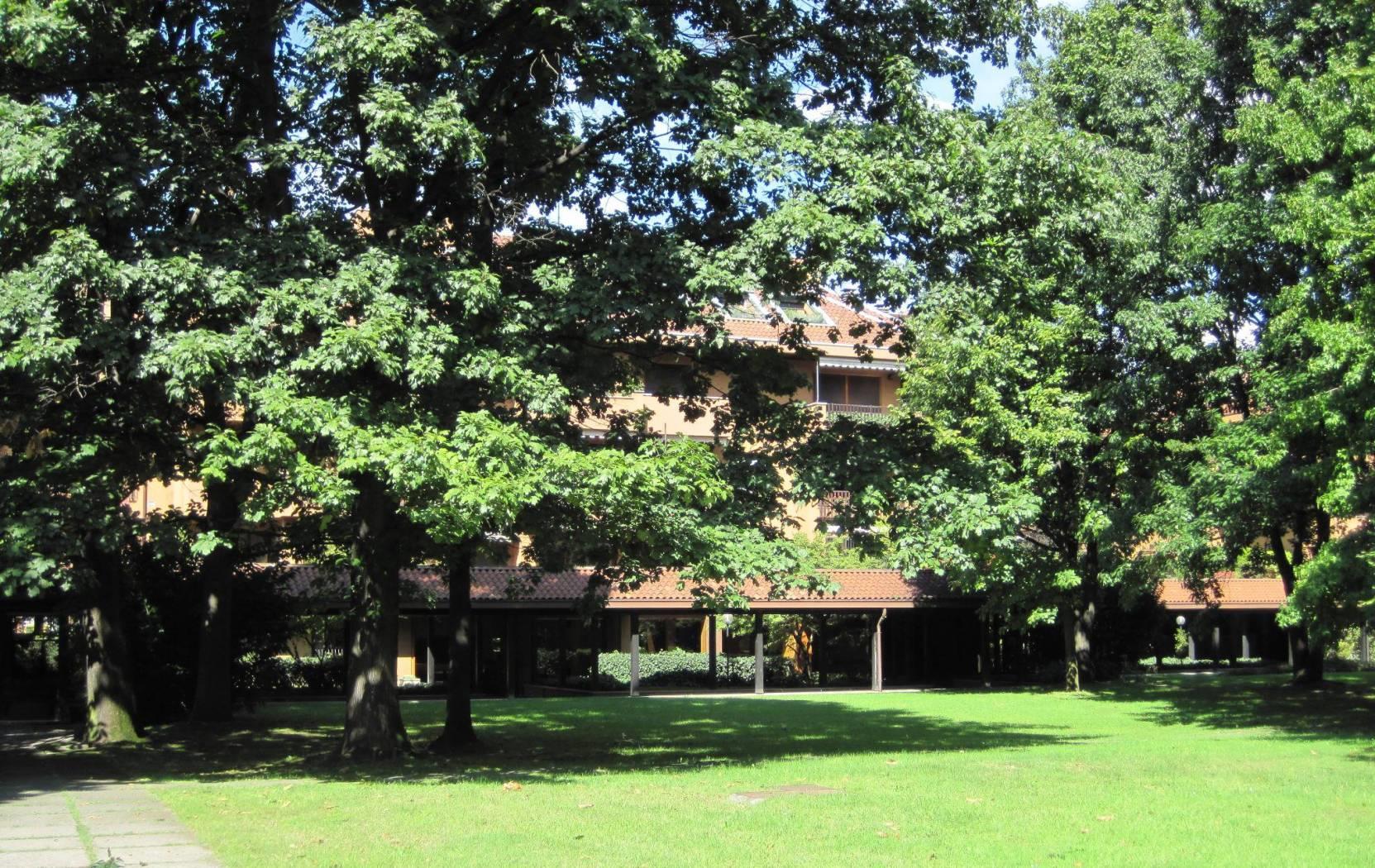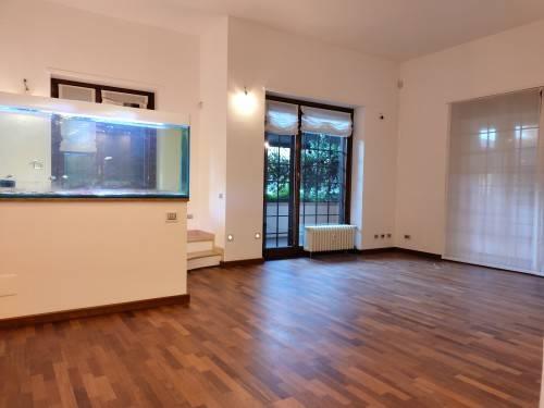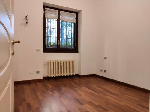 In esclusiva residenza immersa in parco secolare attrezzato e dotato di piscina con doccie e zona solarium, signorile appartamento posto a piano terra composto da doppio ingresso, salone, cucina abitabile arredata, tre camere, doppi servizi e ripostiglio. Sono inoltre presenti alcune armadiature sia nella ona giorno che nella ona notte. Ampio patio privato. Impianto di climatizzazione autonomo. Vano cantina a piano interrato e possibilità vano autorimessa a Euro 130,00 mensili