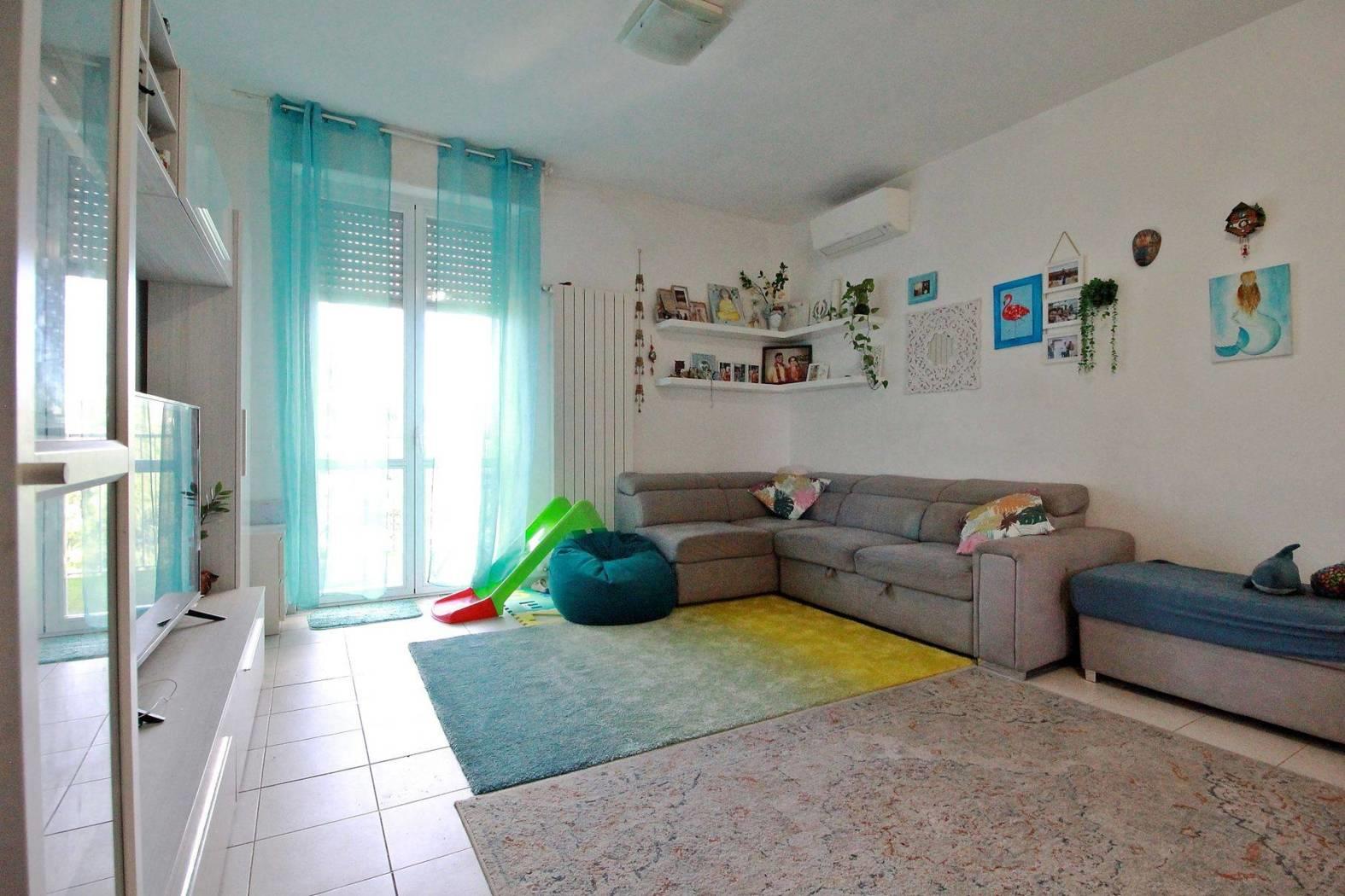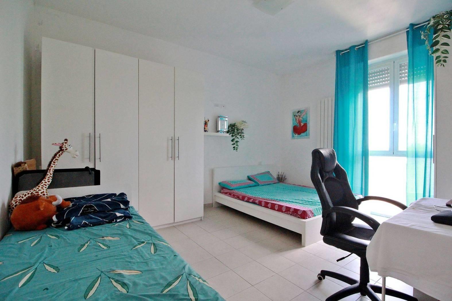 In contesto residenziale, circondato da un piacevole spazio verde e molto ben collegato con tutti i servizi di prioritaria necessita', luminoso tre locali completamente ristrutturato di ottima metratura. L' immobile si presenta con un ampio e soleggiato soggiorno con balcone; la spaziosa cucina abitabile contribuisce a rendere la zona giorno molto vivibile. Dal disimpegno, con abbassamento e faretti, si accede alla zona notte; questa e' contraddistinta da un'ampia camera da letto, da un' altra camera dagli spazi generosi e da un bagno con vasca. La soluzione, molto accogliente, si avvantaggia della presenza dei condizionatori e della predisposizione dell'antifurto. Il condominio si è avvalso del bonus 110% (già completato) ed è quindi stata rifatta l'intera facciata compreso il tetto e tutto il vano boxes, rendendo l'appartamento ad alta efficienza energetica (classe b).