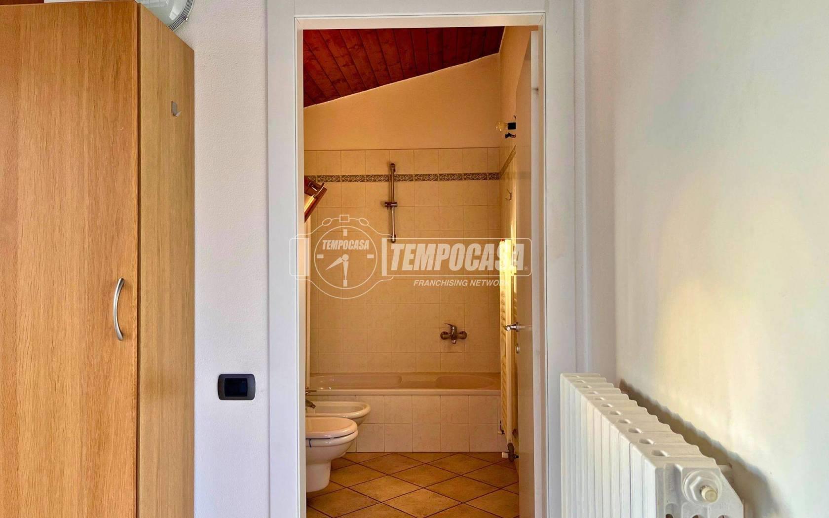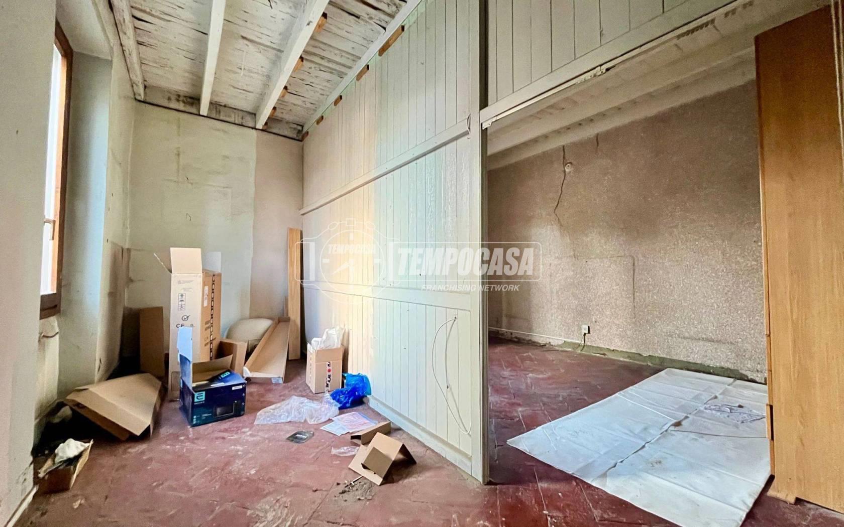Al piano superiore, collegato tramite scala comune, si trova una seconda stanza di pari metratura con doppia esposizione, ideale come camera, ulteriore living o per la creazione di una soluzione abitativa disposta su due livelli.