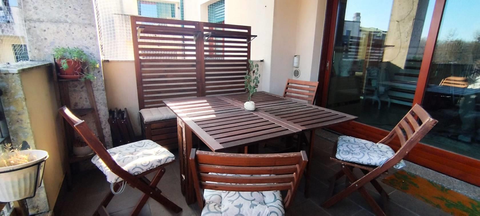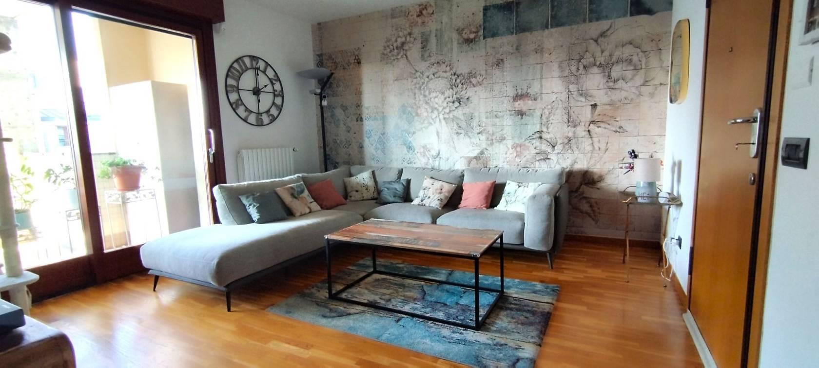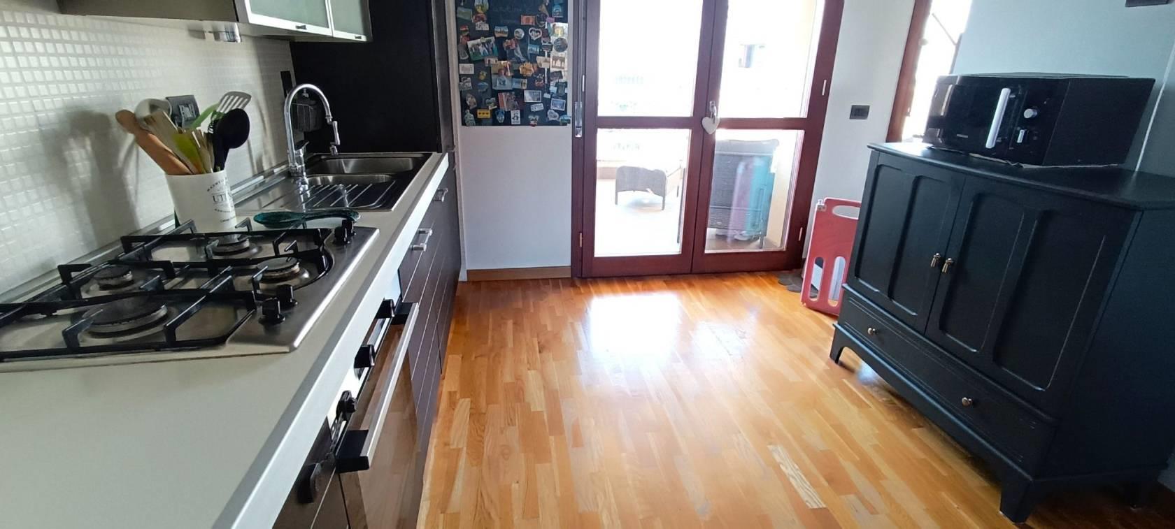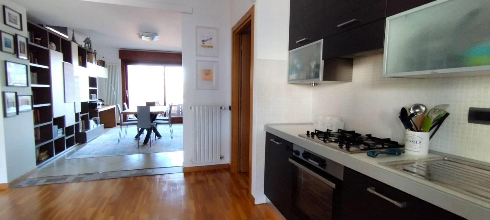 L'appartamento è rifinito in pregiato parquet nella zona living e nelle camere, gres nei bagni; le ampie vetrate a scorrimento per accedere ai terrazzi, antifurto, videocitofono, tutto in perfetto stato! OTTIMO!