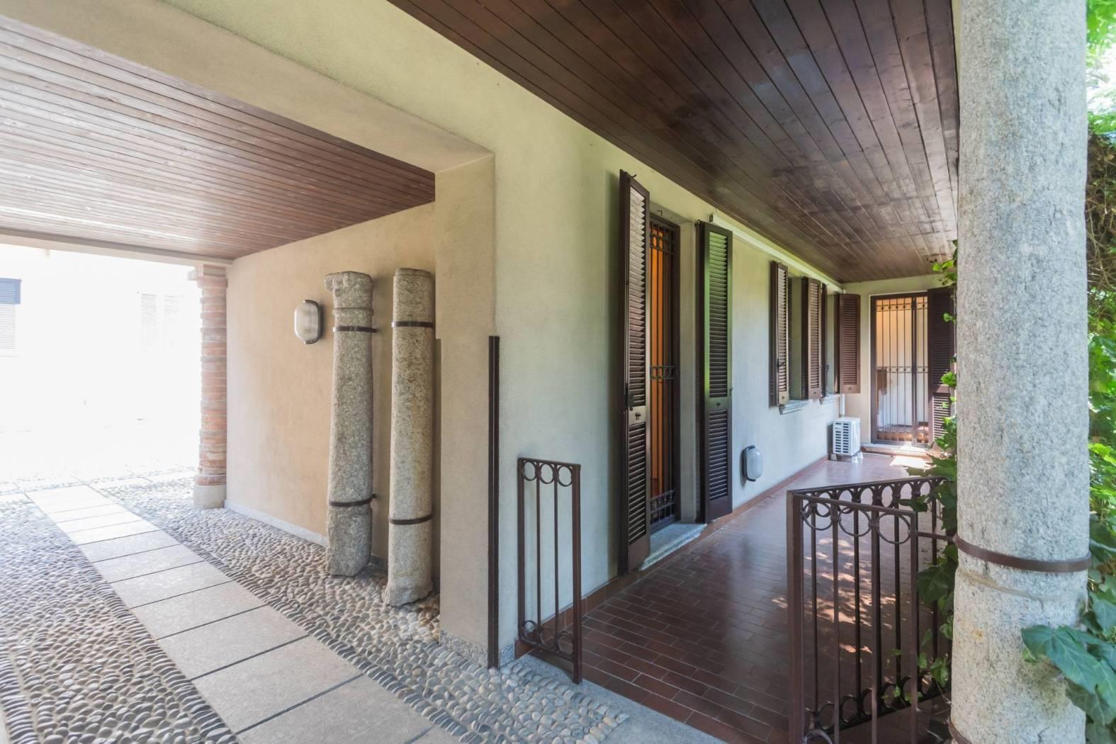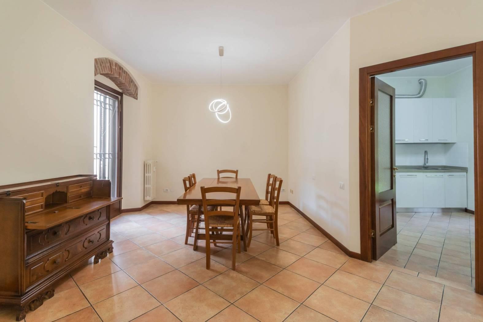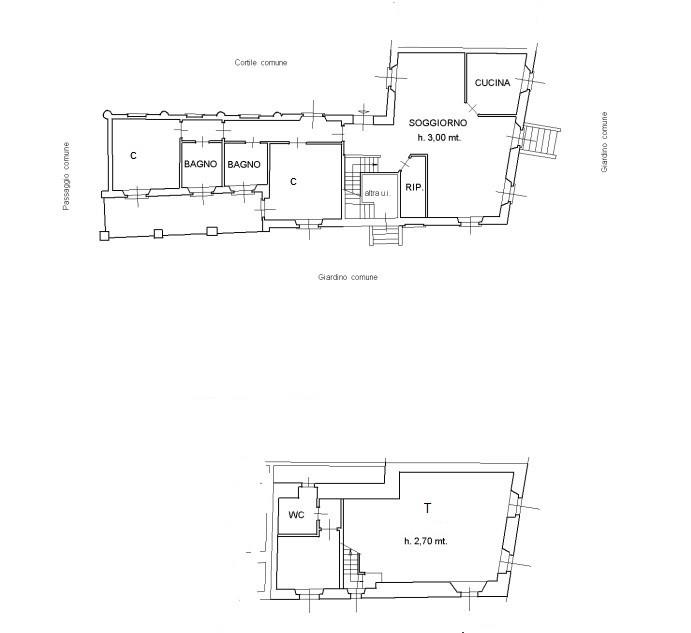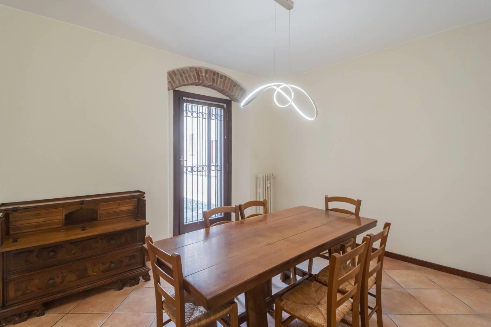 La soluzione posta al piano terra si compone di ingresso su zona pranzo e zona giorno, cucina separata ed abitabile che affaccia sul giardino ad uso esclusivo dell'appartamento, camera matrimoniale, seconda camera spaziosa e due servizi. Collegato da scala interna raggiungiamo il piano taverna, luminoso grazie alle finestre e caratterizzato dalla presenza di un camino tradizionale, un locale ed il bagno lavanderia completano il livello.