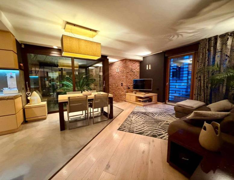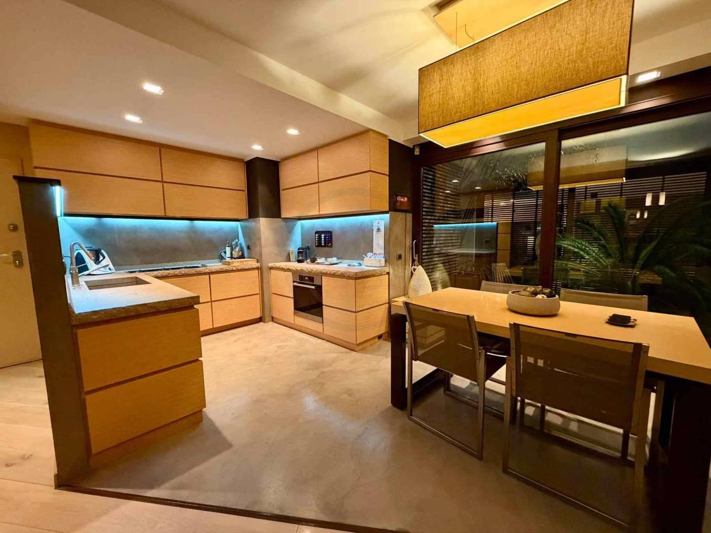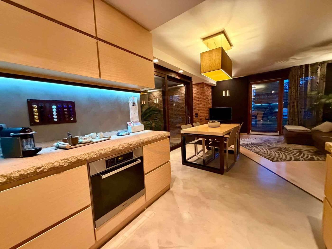 L'immobile è cosi composto: ingresso, ampio zona living con cucina abitabile a vista, due camere, due bagni, lavanderia, cabina armadio, un grande patio centrale utilizzato come giardino d’inverno;