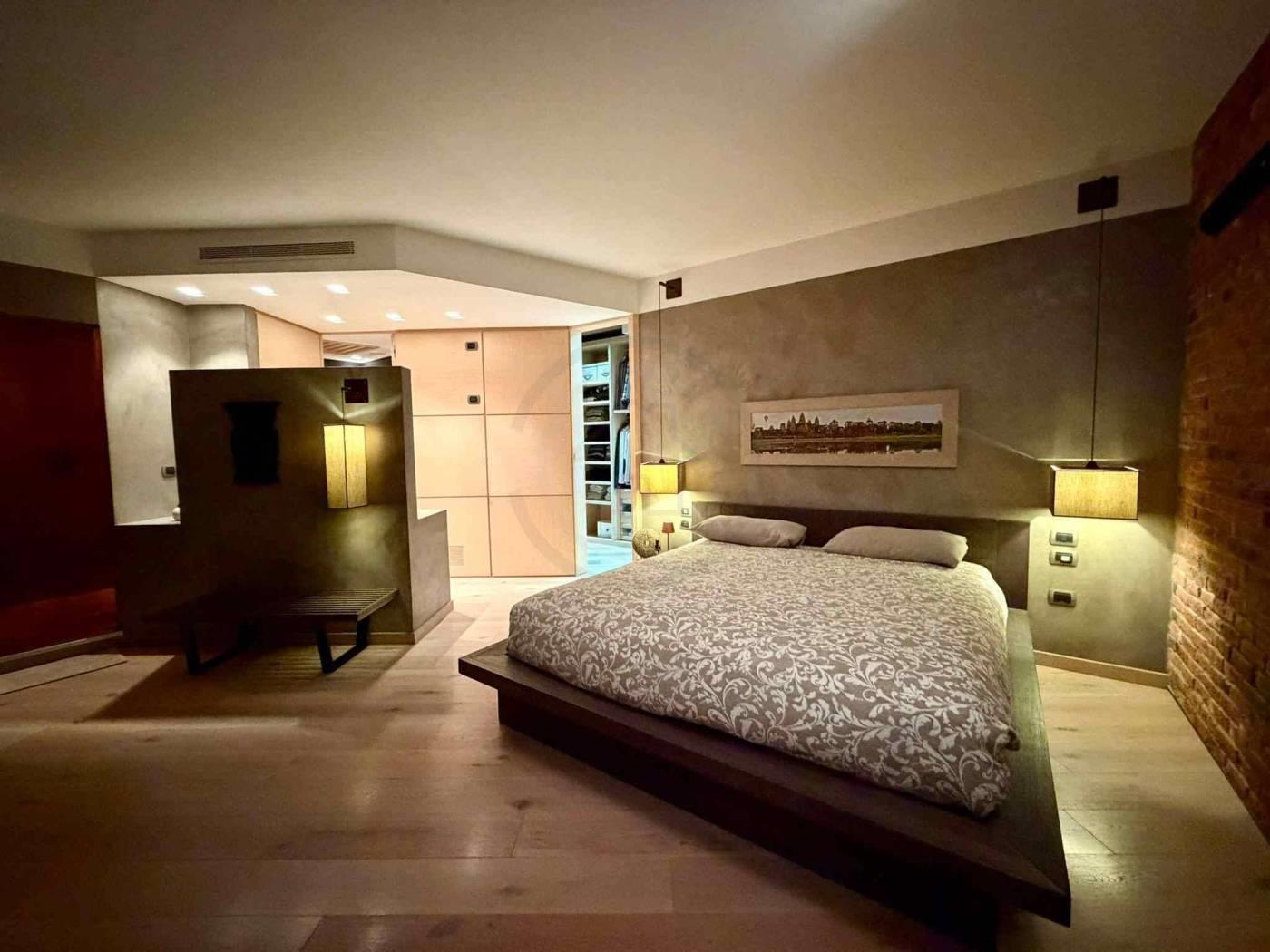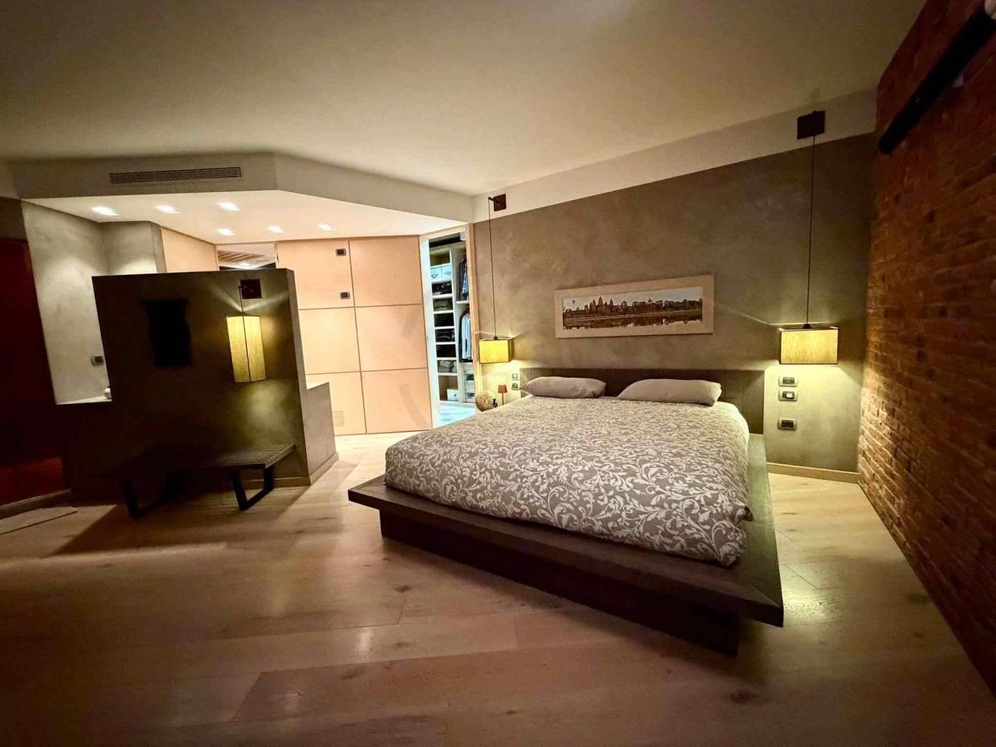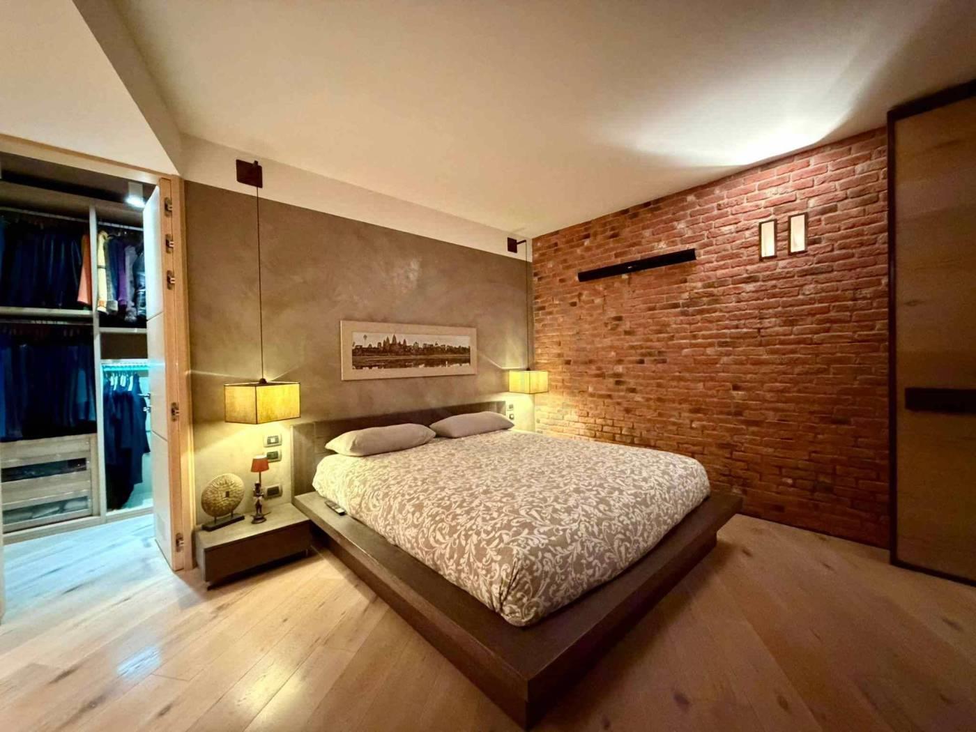 L'ampia camera matrimoniale è caratterizzata da mattoni a vista e una grande vetrata che si affaccia su un ampio patio privato e riservato, letto king-size, bagno en suite con ampia doccia e cabina armadio.