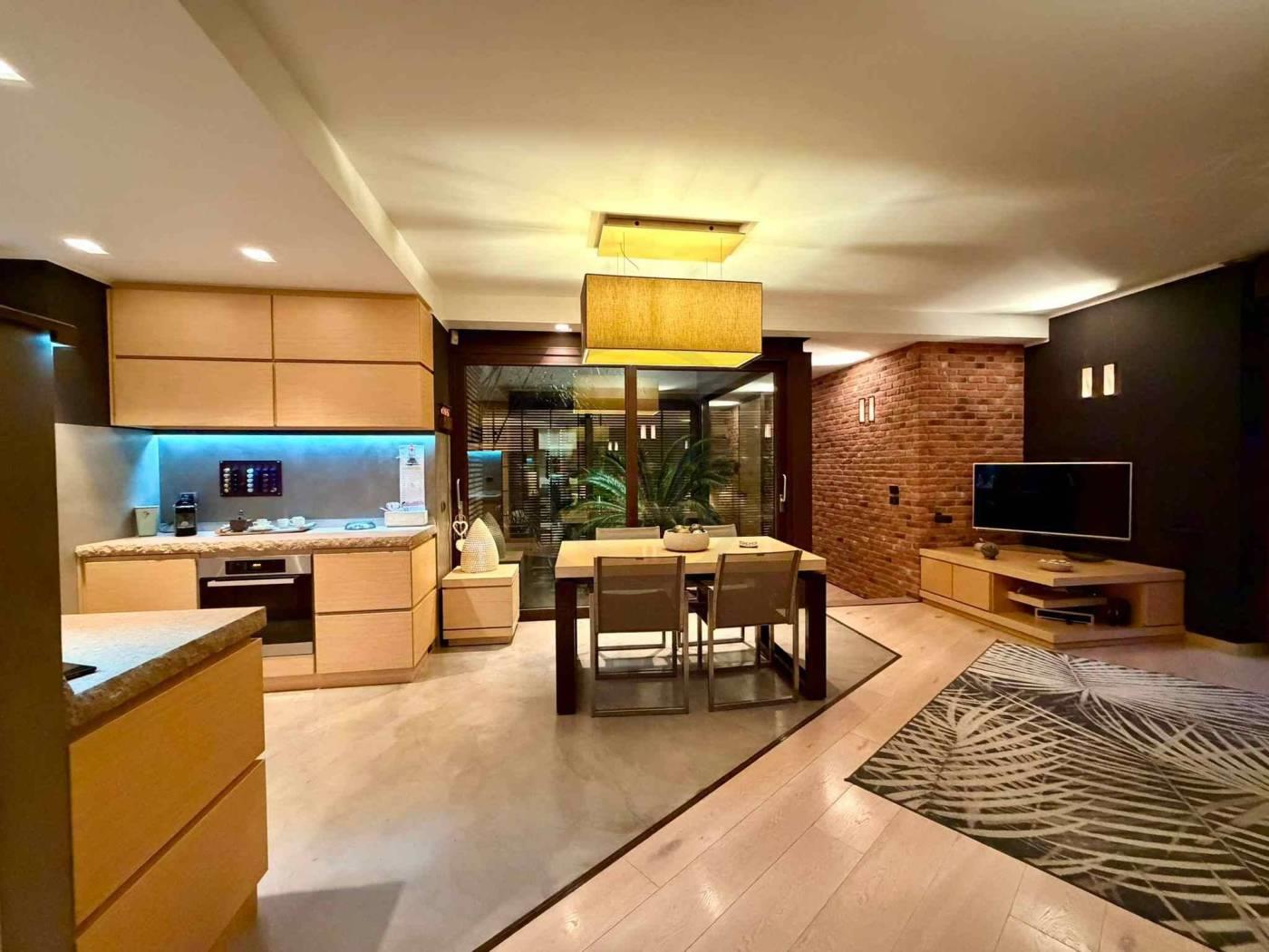 L'immobile è cosi composto: ingresso, ampio zona living con cucina abitabile a vista, due camere, due bagni, lavanderia, cabina armadio, un grande patio centrale utilizzato come giardino d’inverno;