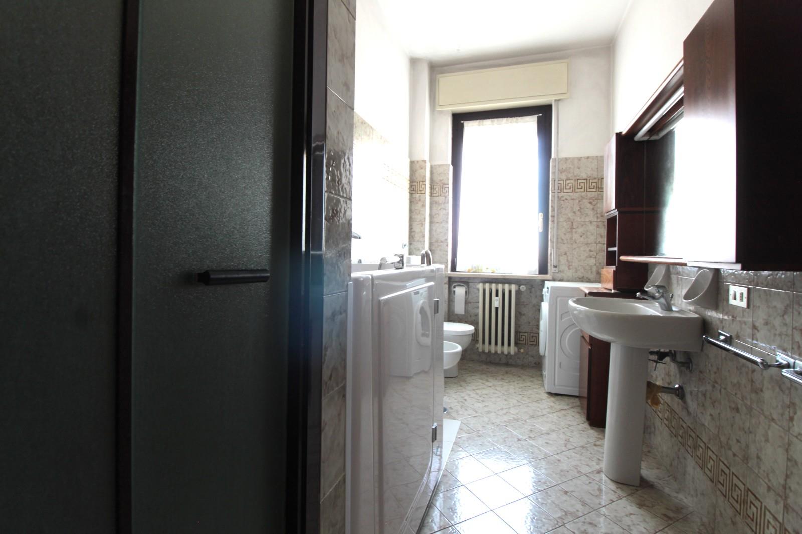 Il bagno è completo di box doccia e piccola vasca.
