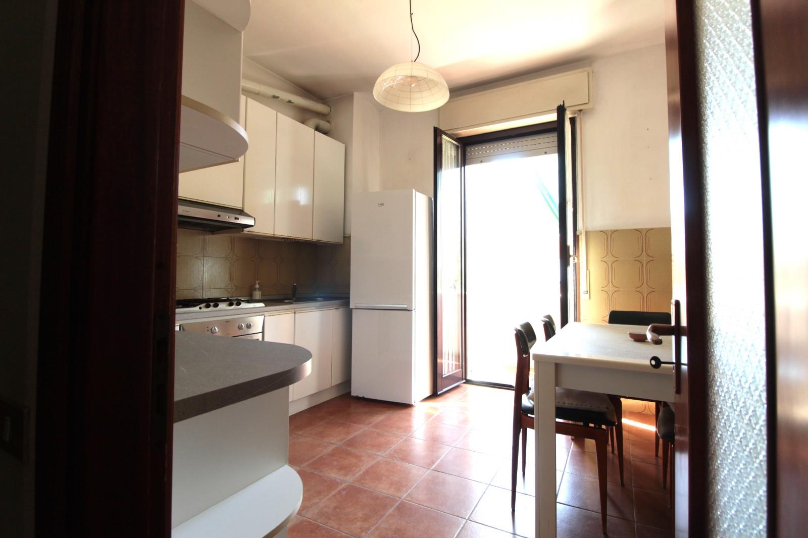 L’ingresso, tramite portoncino blindato, conduce a una spaziosa cucina abitabile con accesso a un balcone, collegato anche al luminoso soggiorno dotato di aria condizionata.
