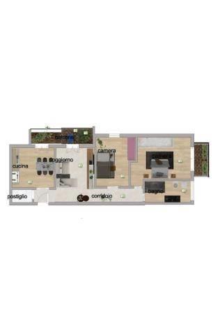 L’ingresso, tramite portoncino blindato, conduce a una spaziosa cucina abitabile con accesso a un balcone, collegato anche al luminoso soggiorno dotato di aria condizionata.
