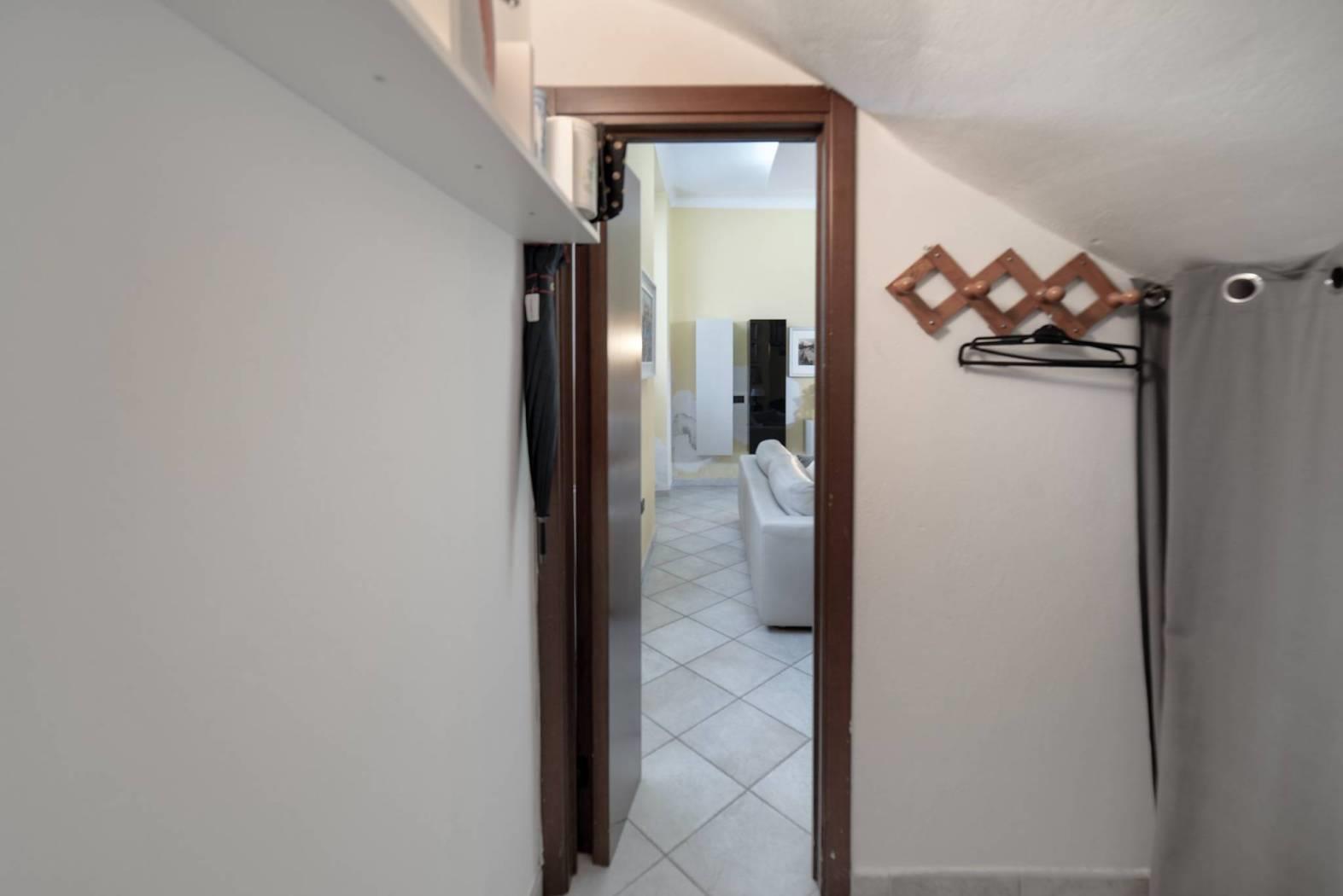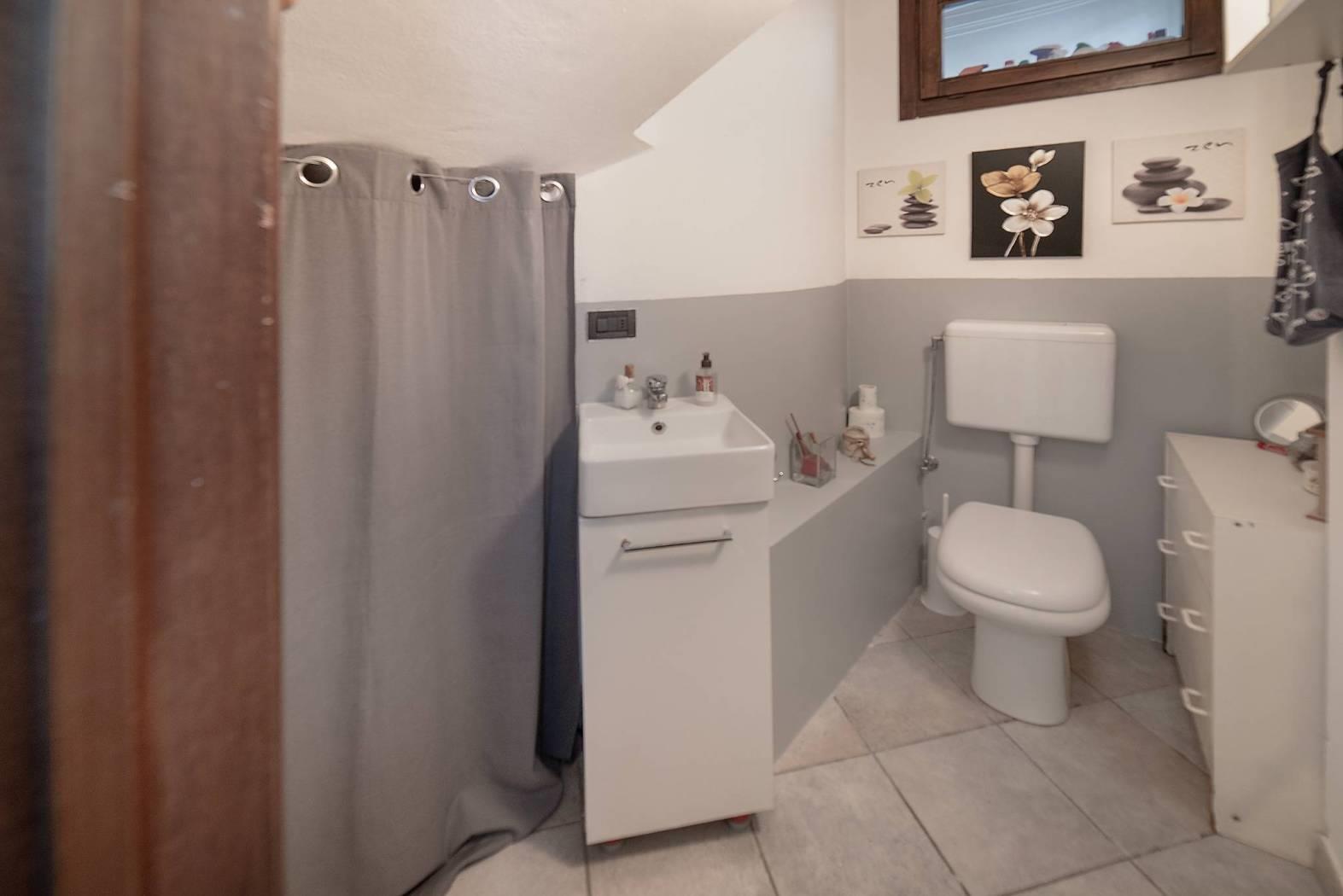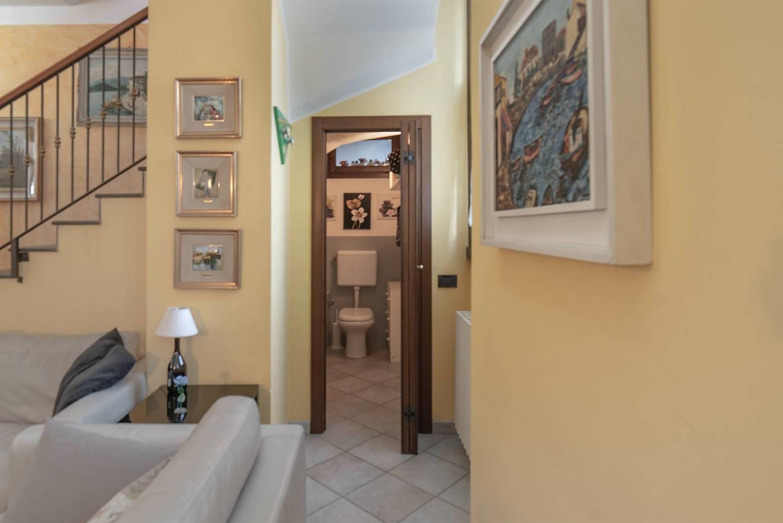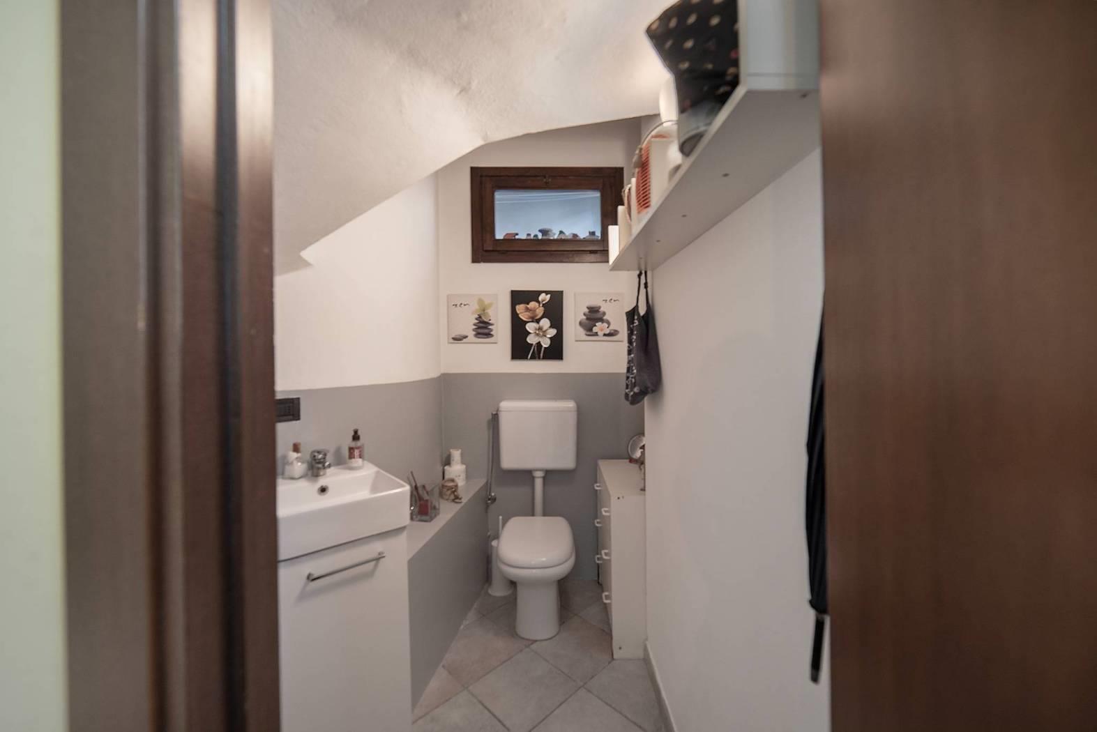 Dal corsello pedonale si accede alla proprietà attraverso il portico dove troviamo al piano terra l'ampio soggiorno, cucina abitabile, primo bagno e ripostiglio. Tramite comoda scala in pietra si raggiunge il secondo livello dove troviamo camera matrimoniale con cabina armadio e accesso al bellissimo loggiato esterno, seconda camera da letto e bagno con vasca idromassaggio.