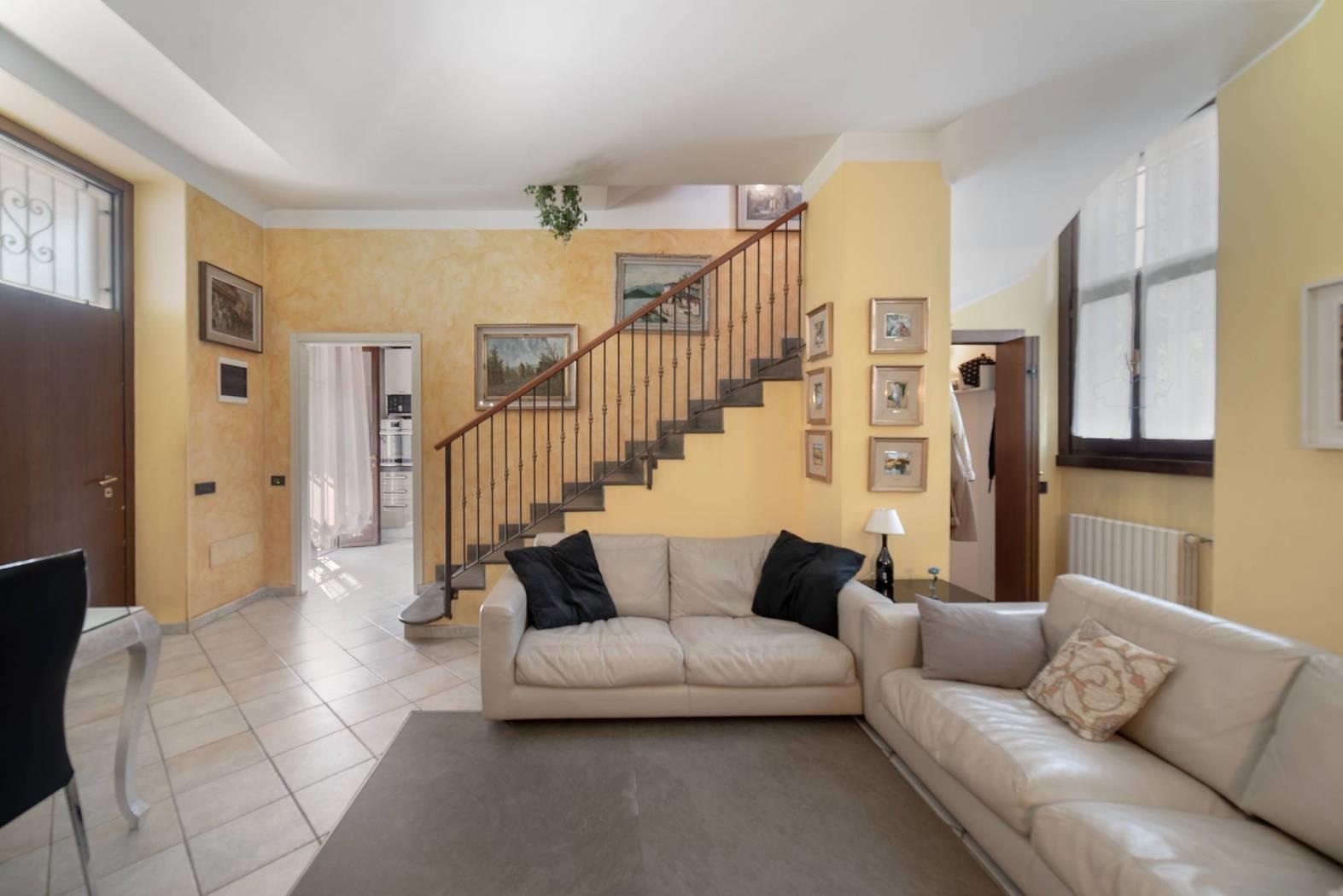 In zona centrale, comoda per raggiungere tutti i servizi e i paesi limitrofi, proponiamo in vendita appartamento su due livelli ricavato da una porzione di cascina ristrutturata.