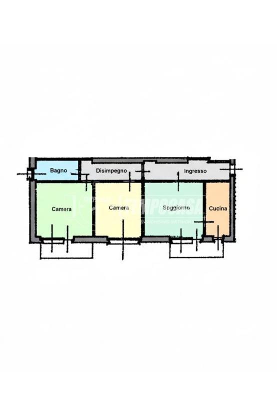 L'immobile, sito al terzo ed ultimo piano senza ascensore, è così disposto: ingresso, soggiorno con annesso balcone, cucinotto con annesso balcone, disimpegno, due camere da letto matrimoniali di cui una con annesso balcone e bagno finestrato.