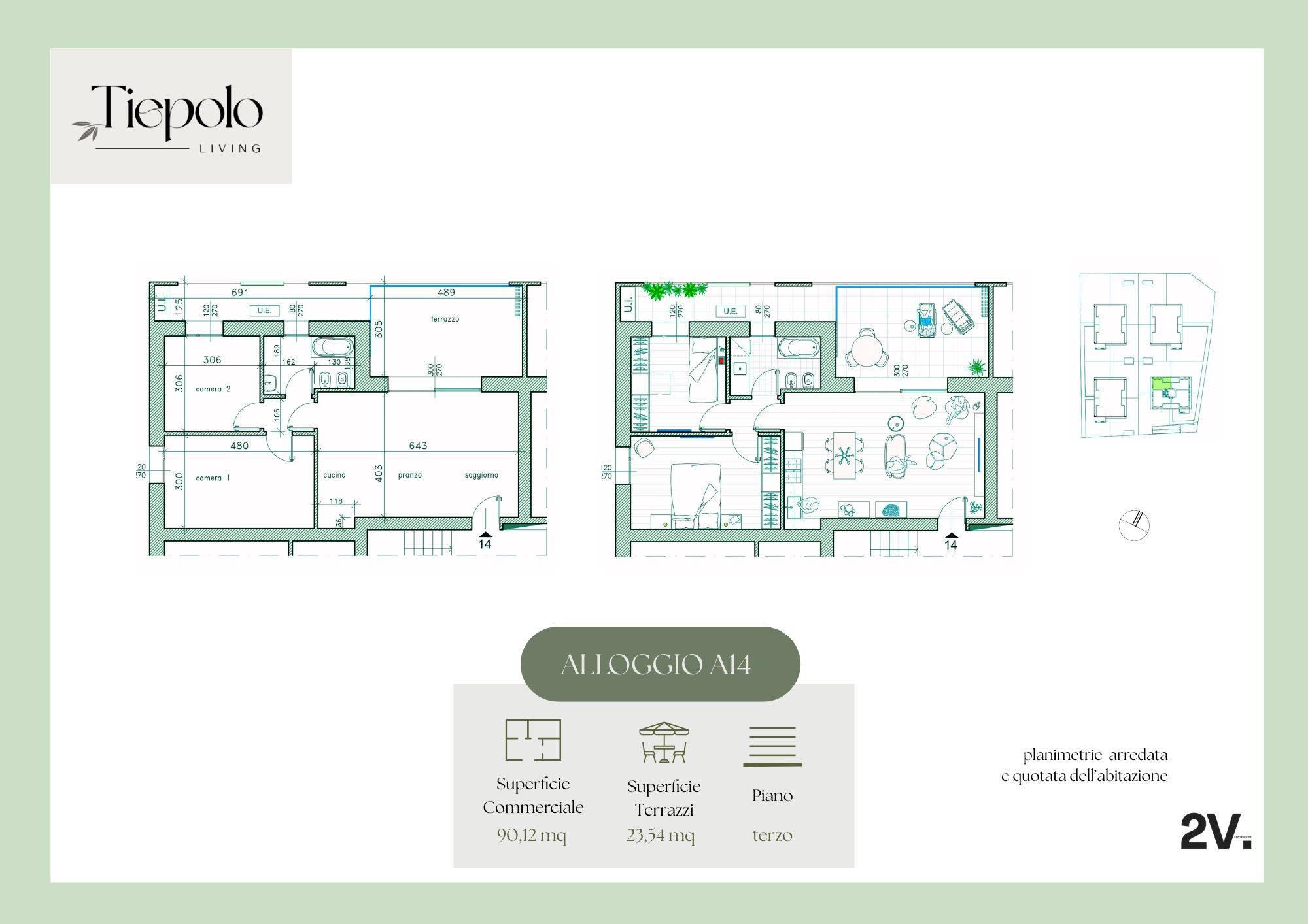 Tiepolo Living, appartamento A/14:tre locali con terrazzo.