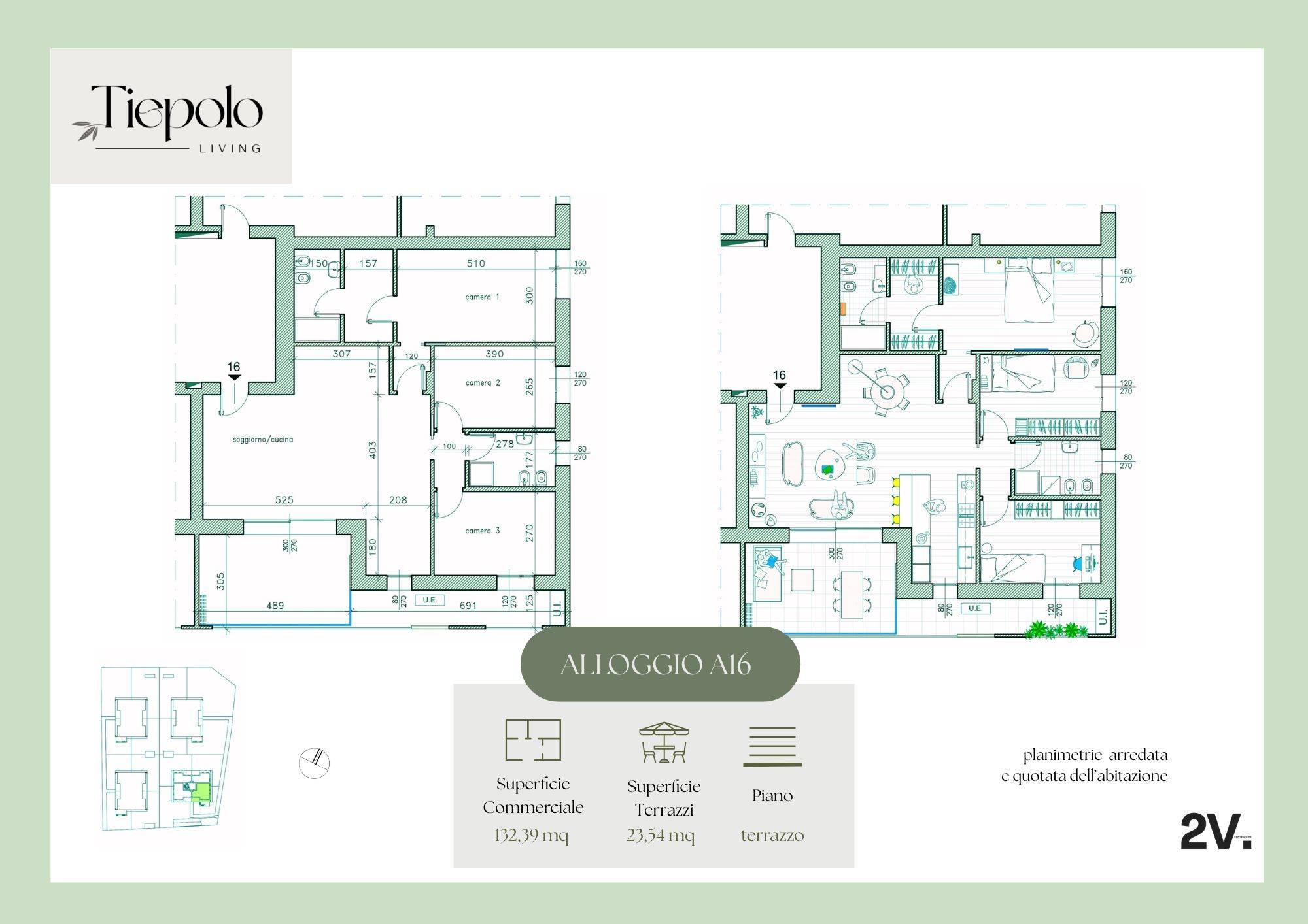 Tiepolo Living, appartamento A/16: quattro locali con doppi servizi e terrazzo.