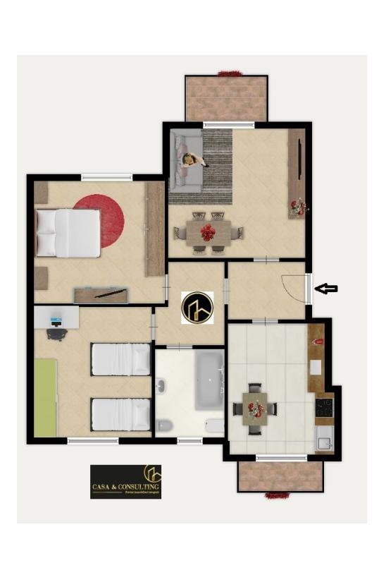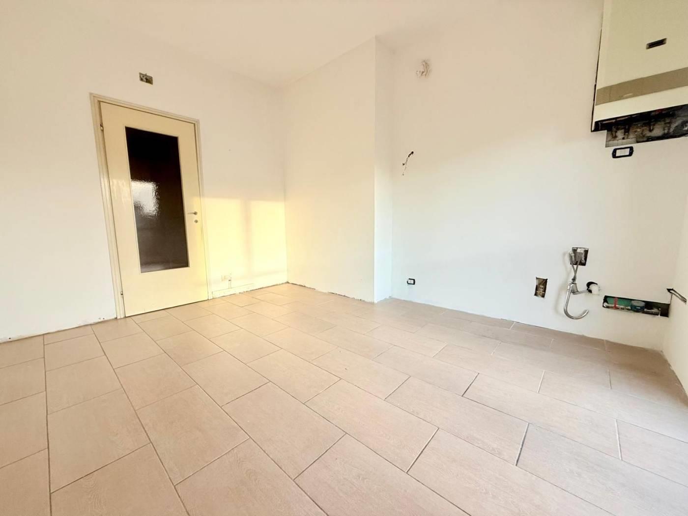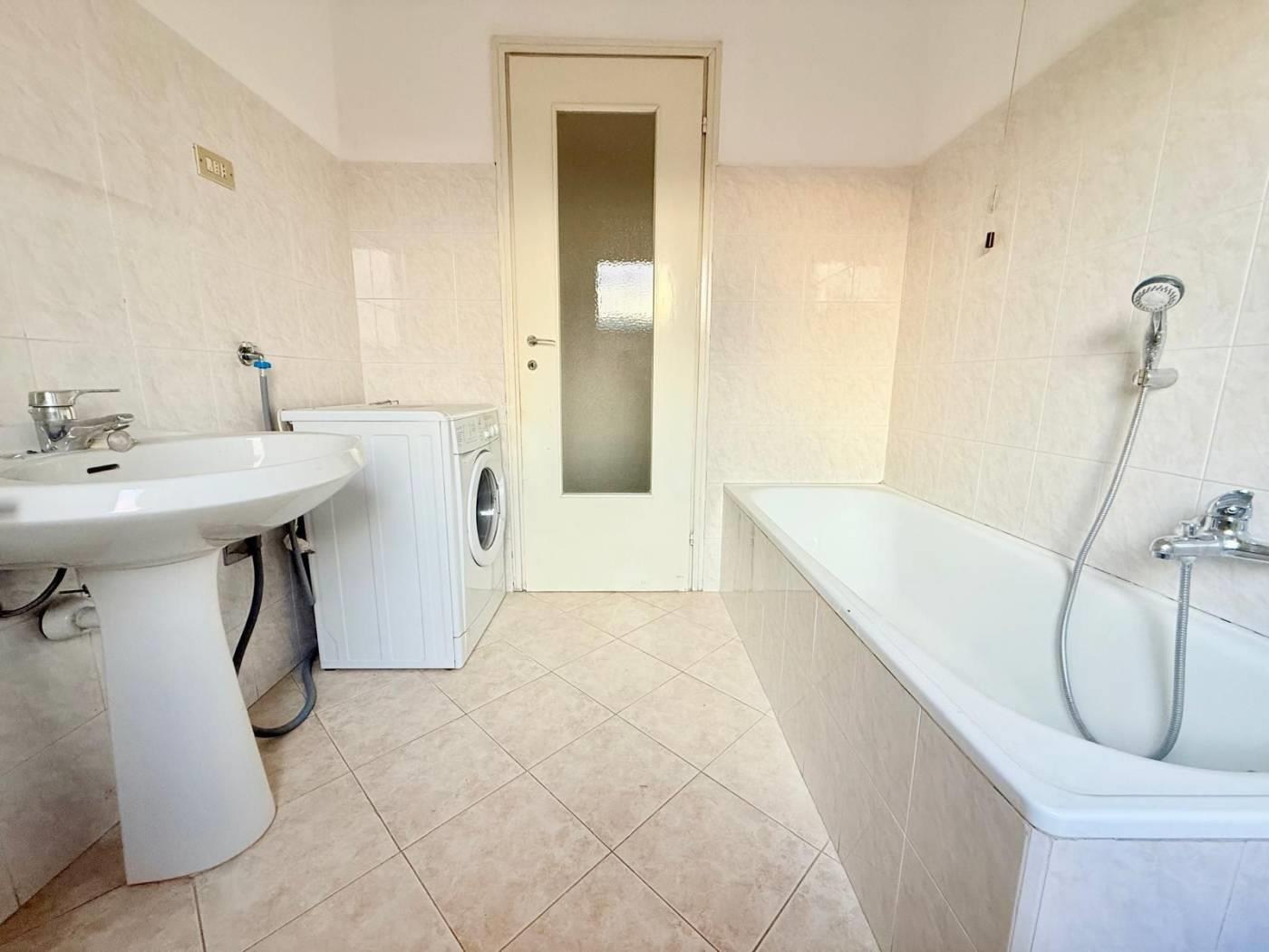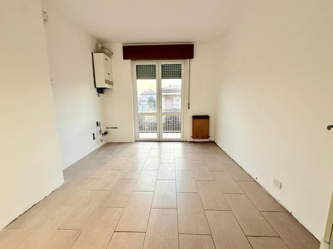 Al suo interno l'immobile si distingue per gli ambienti spaziosi e ben distribuiti. Una comoda zona d'ingresso introduce l'abitazione che dispone di soggiorno e cucina abitabile, entrambi gli ambienti offrono l'accesso ad un balcone, il reparto notte vanta due camere da letto matrimoniali ed il bagno con vasca.