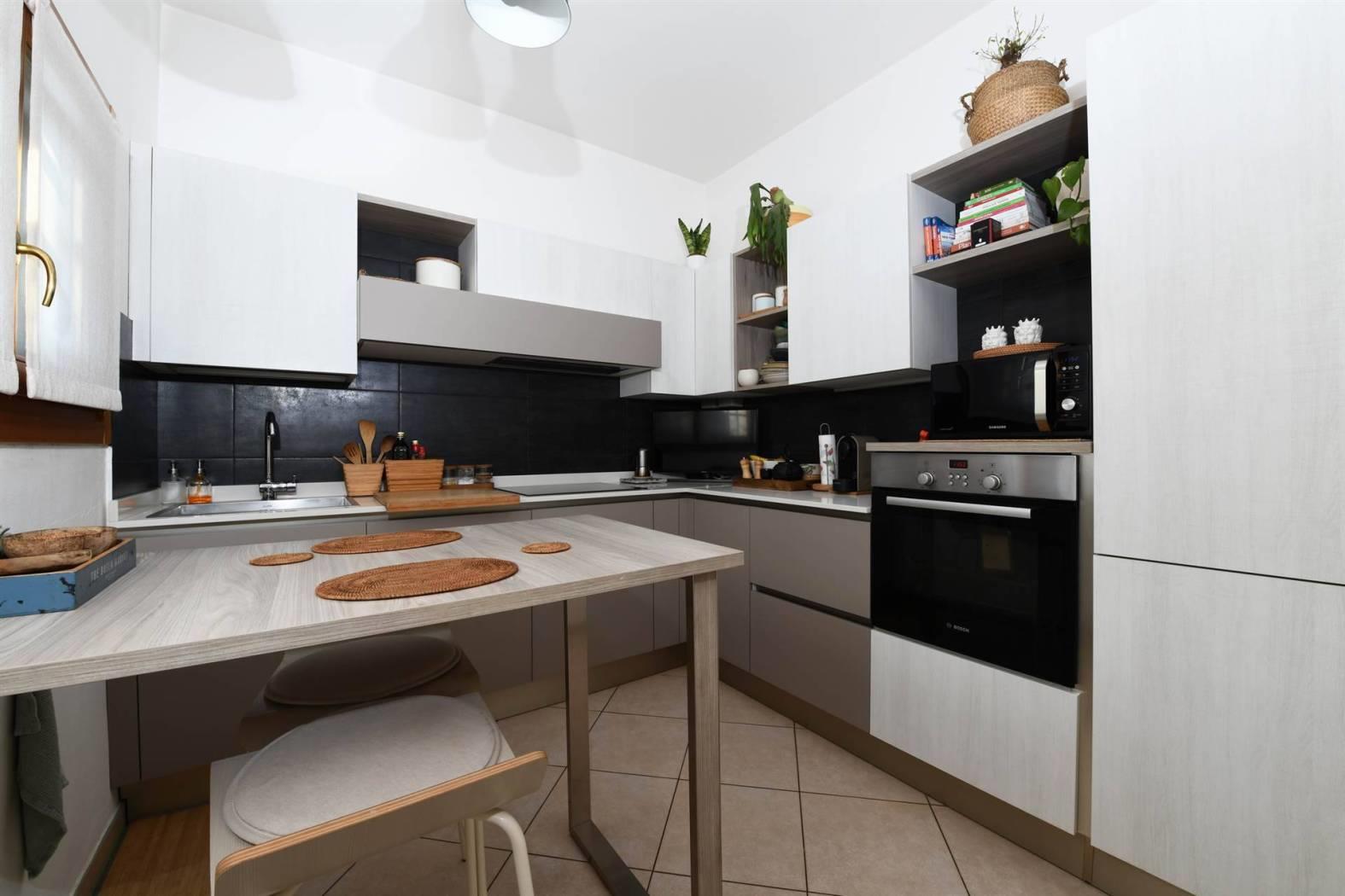 L'appartamento è composto da tre vani ben distribuiti, con due camere da letto spaziose che assicurano il massimo comfort. La cucina abitabile è perfetta per chi ama cucinare e trascorrere momenti conviviali. Il bagno è funzionale e in ottime condizioni, come il resto dell'immobile, che si presenta in condizioni eccellenti.