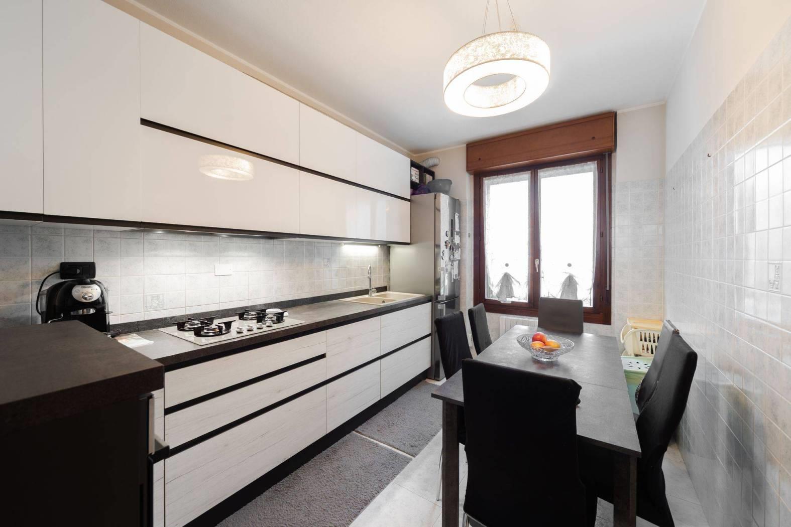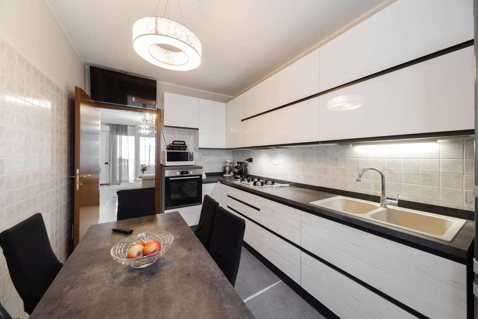 La zona giorno è completata da una cucina abitabile, funzionale e ben separata.