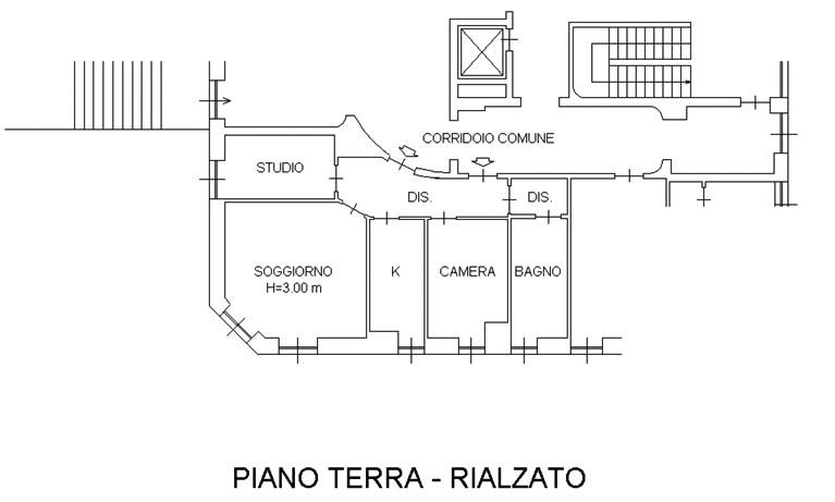 L'appartamento è così composto: ingresso, ampio soggiorno, cucina semi/abitabile, disimpegno che conduce all'ampia camera matrimoniale, allo studio e al comodo bagno finestrato e dotato di vasca.