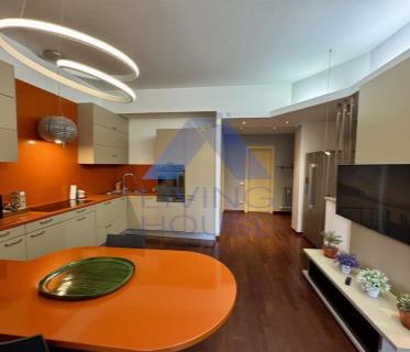 L'appartamento si compone di soggiorno doppio con sala da pranzo, con accesso diretto al terrazzo semi scoperto di 30 metri che affaccia sullo splendido giardino condominiale e sulle vetrate di copertura della piscina coperta e riscaldata.