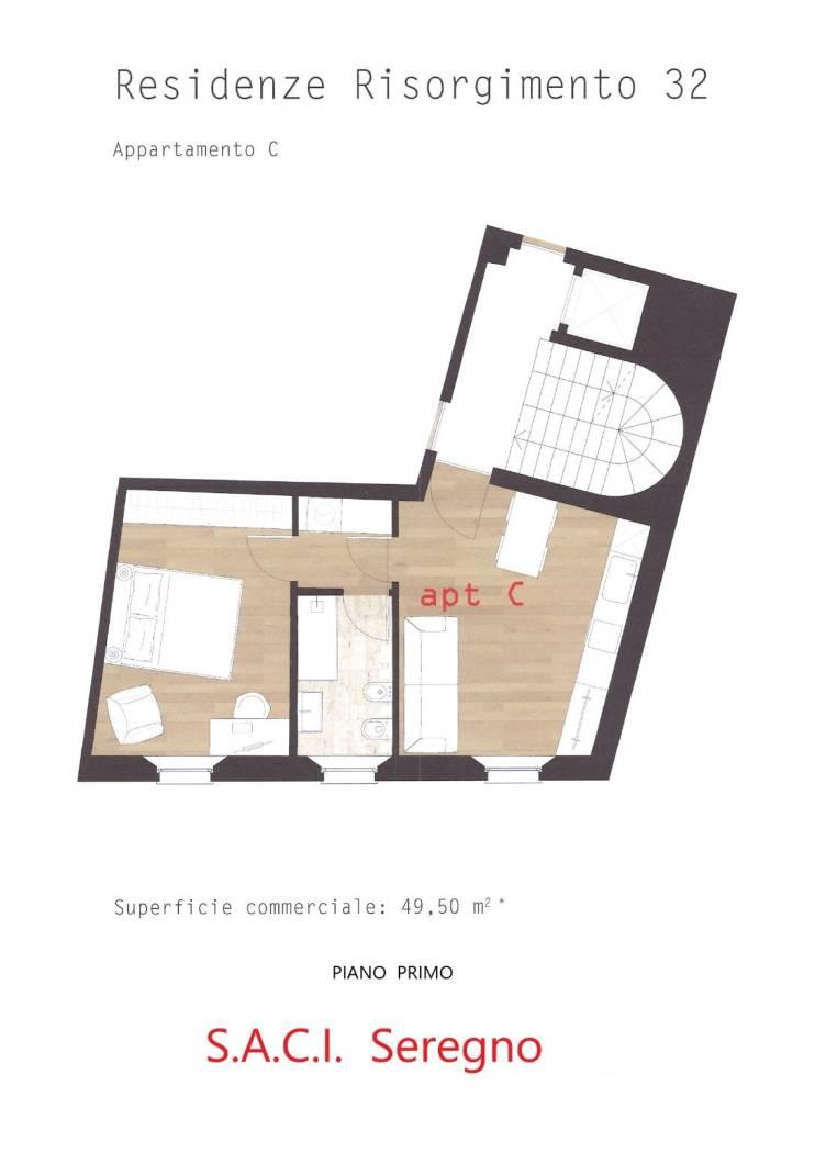 Appartamento posto al piano primo in palazzina di sole 5 unità abitative così composto: Ingresso, soggiorno/cottura, 2 bagni e due camere da letto, possibilità di box ad € 18.000,00.
