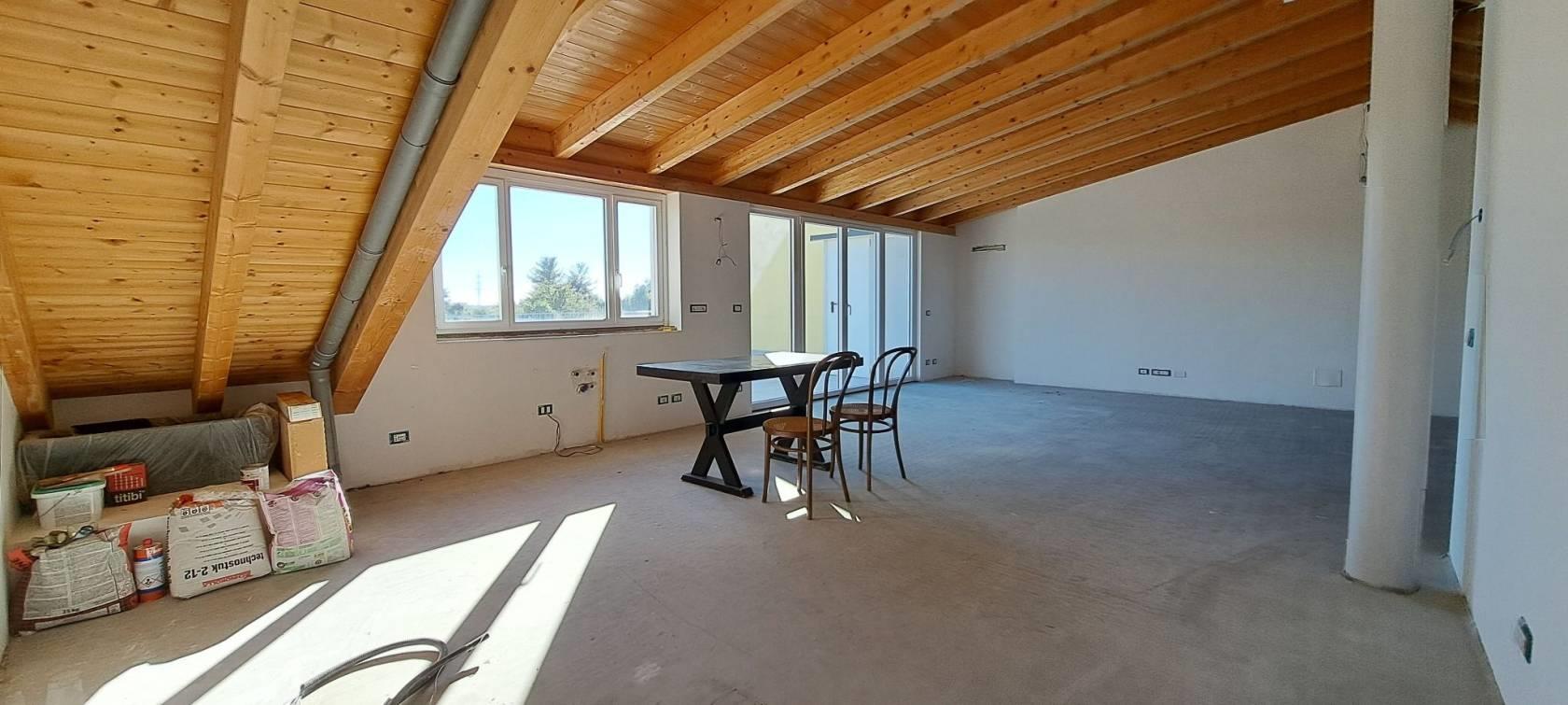 Nel centro storico del paese, comodissimo con tutti i servizi e con la stazione ferroviaria, proponiamo un attico di circa 130 mq, in fase di finitura, così composto: ampio soggiorno con cucina a vista (possibilità di renderla abitabile) con affaccio su un ampio terrazzo a uso esclusivo , disimpegno, due camere da letto e doppi servizi con possibilità di ricavare un ulteriore camera/studio. L'immobile è stato realizzato tenendo conto di tutte le moderne normative sul risparmio energetico. Completano l'immobile due posti auto e un garage. Termoautonomo (con riscaldamento a pavimento). l'immobile verrà consegnato completato, entro 90 giorni dall'accettazione della proposte, le finiture sono a discrezione del proprietario. No animali domestici. Veramente bello e unico nel suo genere, da vedere!!!