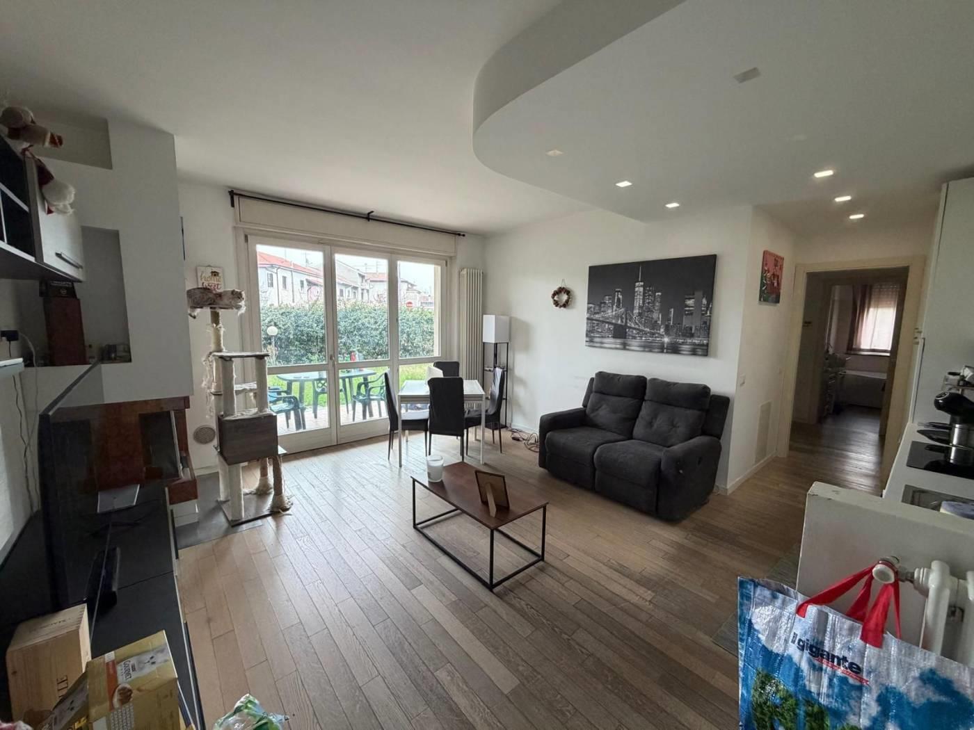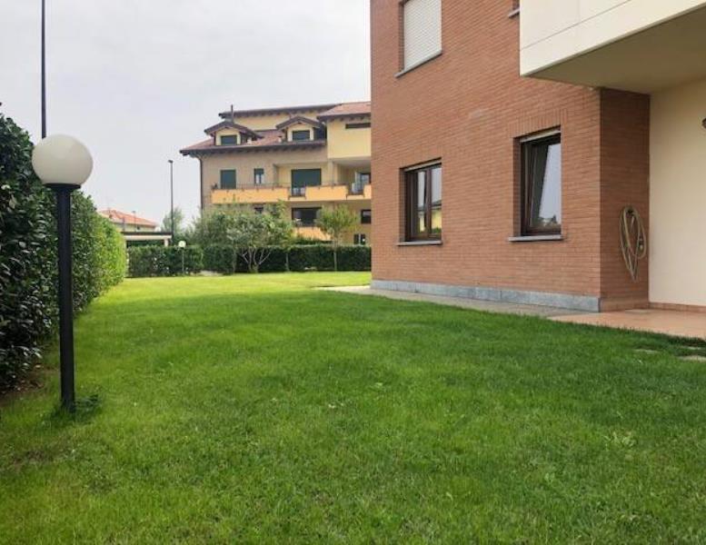 PER APPUNTAMENTI CHIAMARE IL NUMERO 0362/522044. LIBERO DAL 01/07/2026. In recentissimo contesto costruito secondo le ultime normative sul risparmio energetico e comodo con tutti i principali servizi (posta, scuole, asili, supermercati, ecc.) proponiamo un grazioso trilocale di circa 75mq, arredato esclusivamente di cucina, così composto: soggiorno con camino e cucina a vista (arredata), disimpegno, camera, cameretta ed ampio bagno con vasca idromassaggio e doccia. Completano l'immobile un giardino privato di circa 220mq, la cantina ed un ampio box singolo. L'immobile è inoltre dotato di antifurto e predisposizione per aria condizionata. No animali domestici. Veramente bello, da vedere!!!