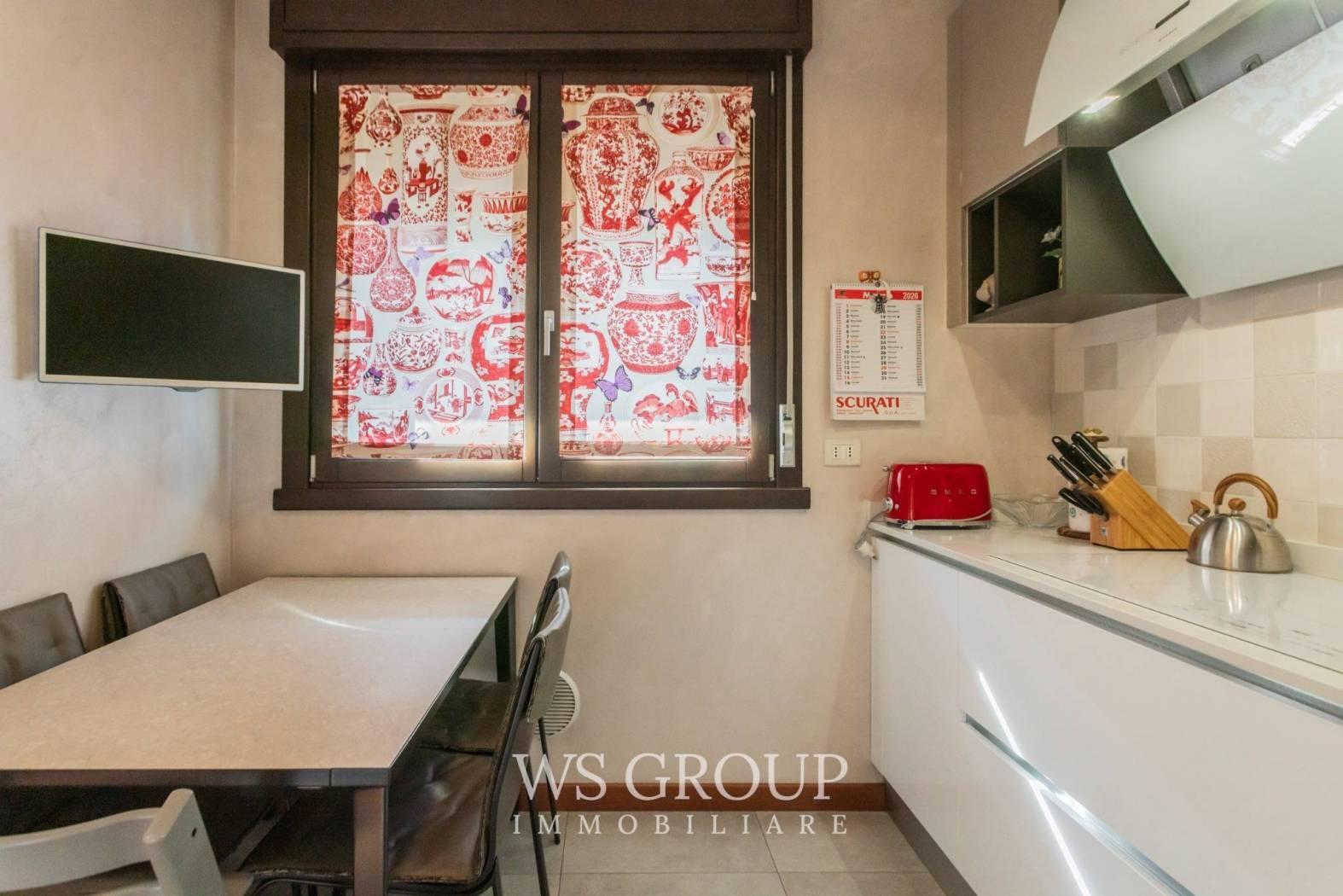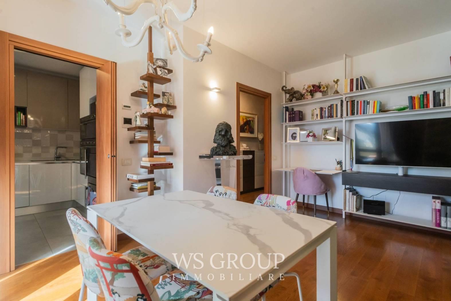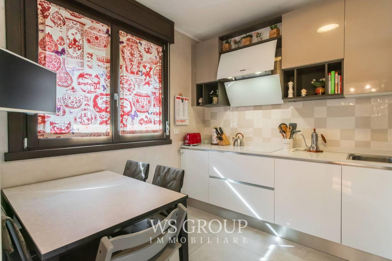 L’appartamento si presenta in ottime condizioni, tanto da poter essere a tutti gli effetti equiparabile al “nuovo”. In fase di realizzazione è stato valorizzato con numerose finiture extra capitolato, tra cui l’elegante pavimentazione in parquet di rovere spazzolato e verniciato, il gres porcellanato e i particolari rivestimenti di bagni e cucina, gli ottimi serramenti esterni in legno con doppio vetro, l’impianto di climatizzazione con unità esterna e tre split, le tende da sole motorizzate e con dispositivo antivento su entrambi i terrazzini, le zanzariere scorrevoli e/o a molla su tutti i serramenti. L’impianto condominiale fornisce sia il riscaldamento che l’acqua calda sanitaria, con contabilizzazione individuale dei consumi effettivi. I terminali di emissione del calore sono costituiti da pannelli radianti a pavimento, con possibilità di termoregolare autonomamente ogni ambiente, garantendo sia il miglior comfort abitativo che il contenimento dei costi energetici.